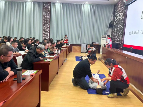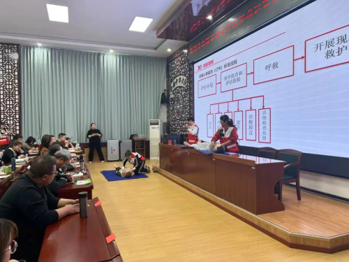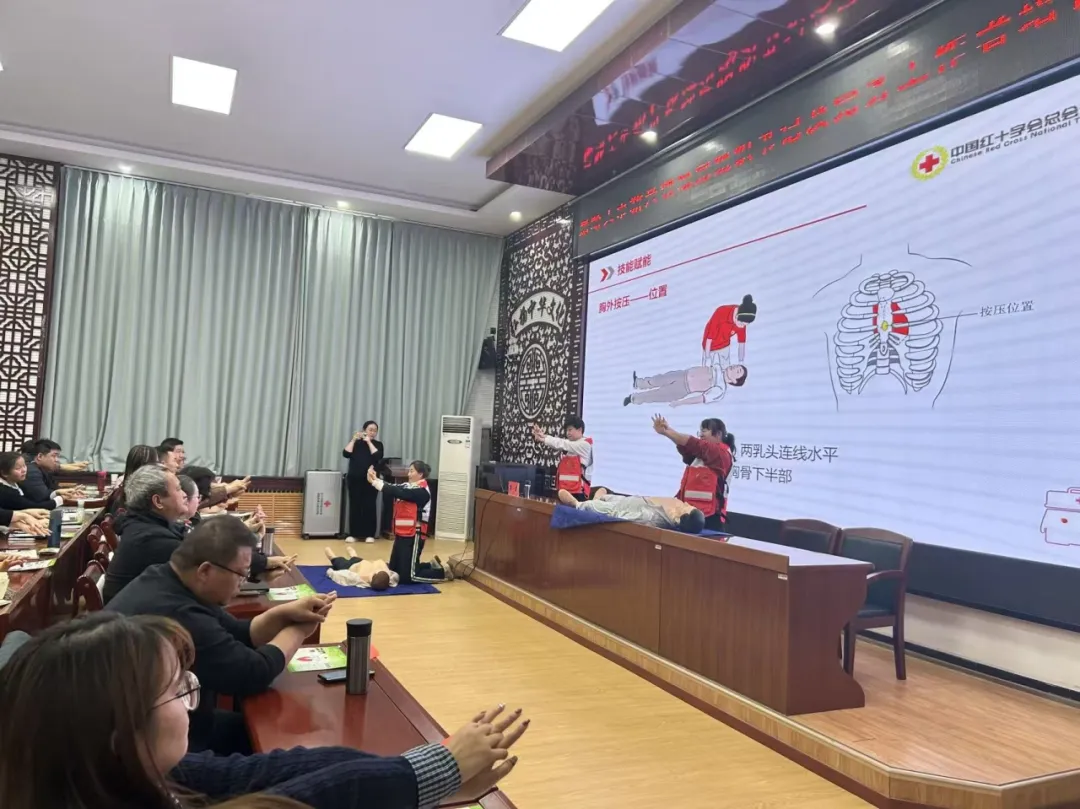 培训现场,市红十字会讲师围绕红十字会的起源发展、“人道、博爱、奉献”的核心精神展开解读,系统阐述了应急救护培训在保障生命安全、提升社会应急能力中的重要意义,为培训奠定了坚实的思想基础。