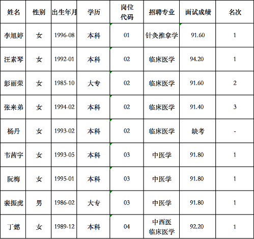 嘉峪关市2023年卫生健康系统基层医疗机构聘用制执业(助理)医师招聘面试成绩公布