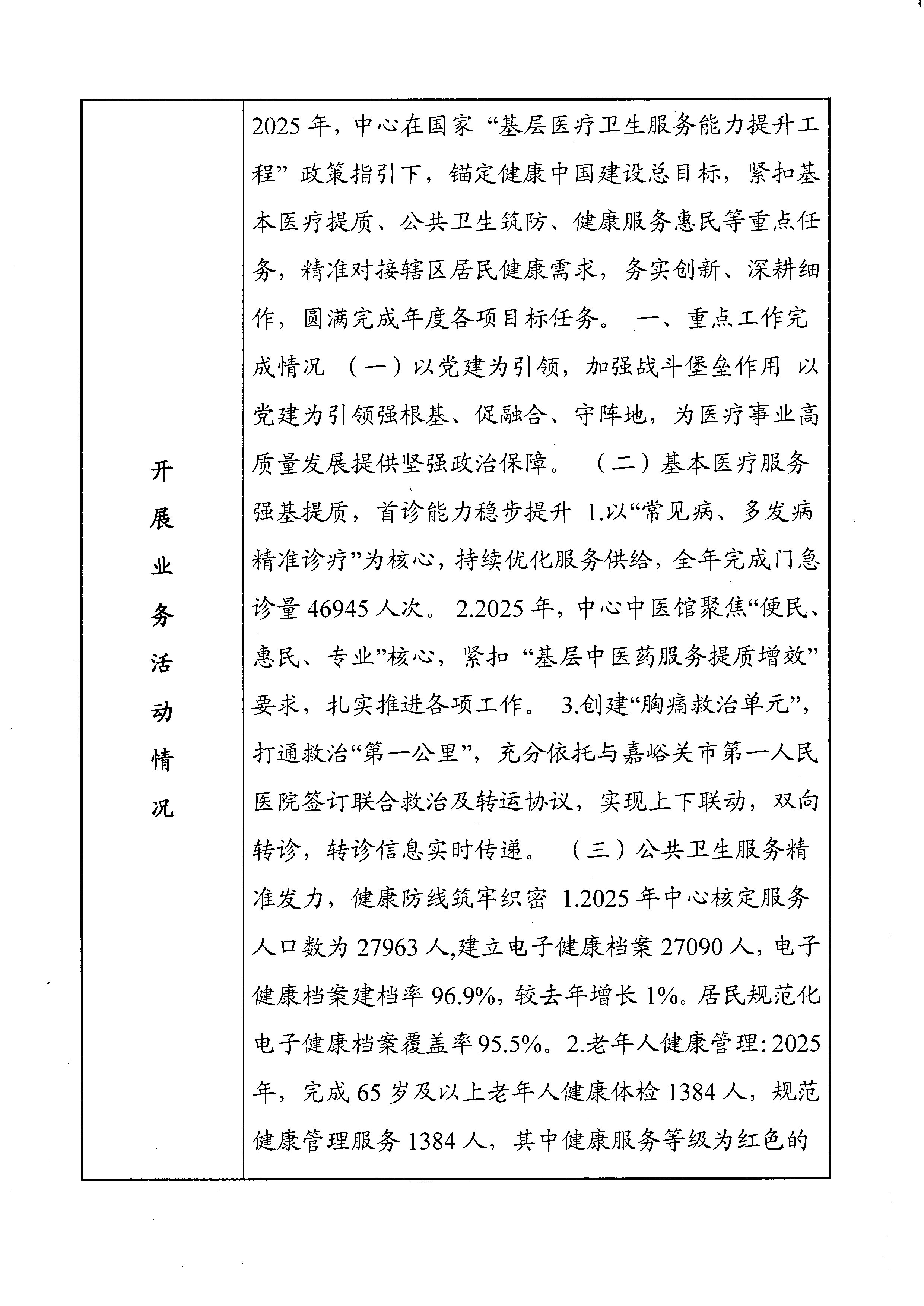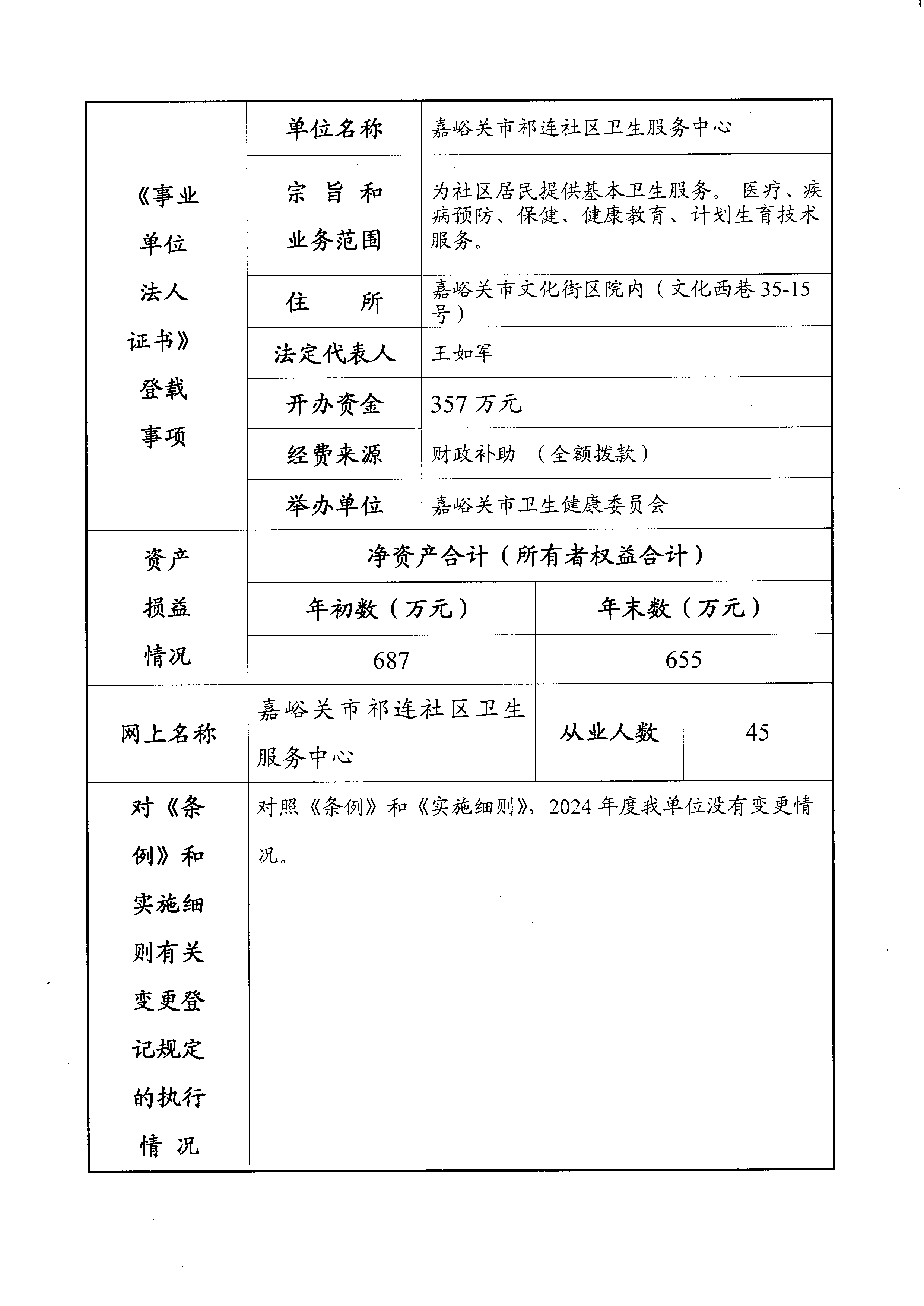 嘉峪关市祁连社区卫生服务中心事业单位法人(2025)年度报告书