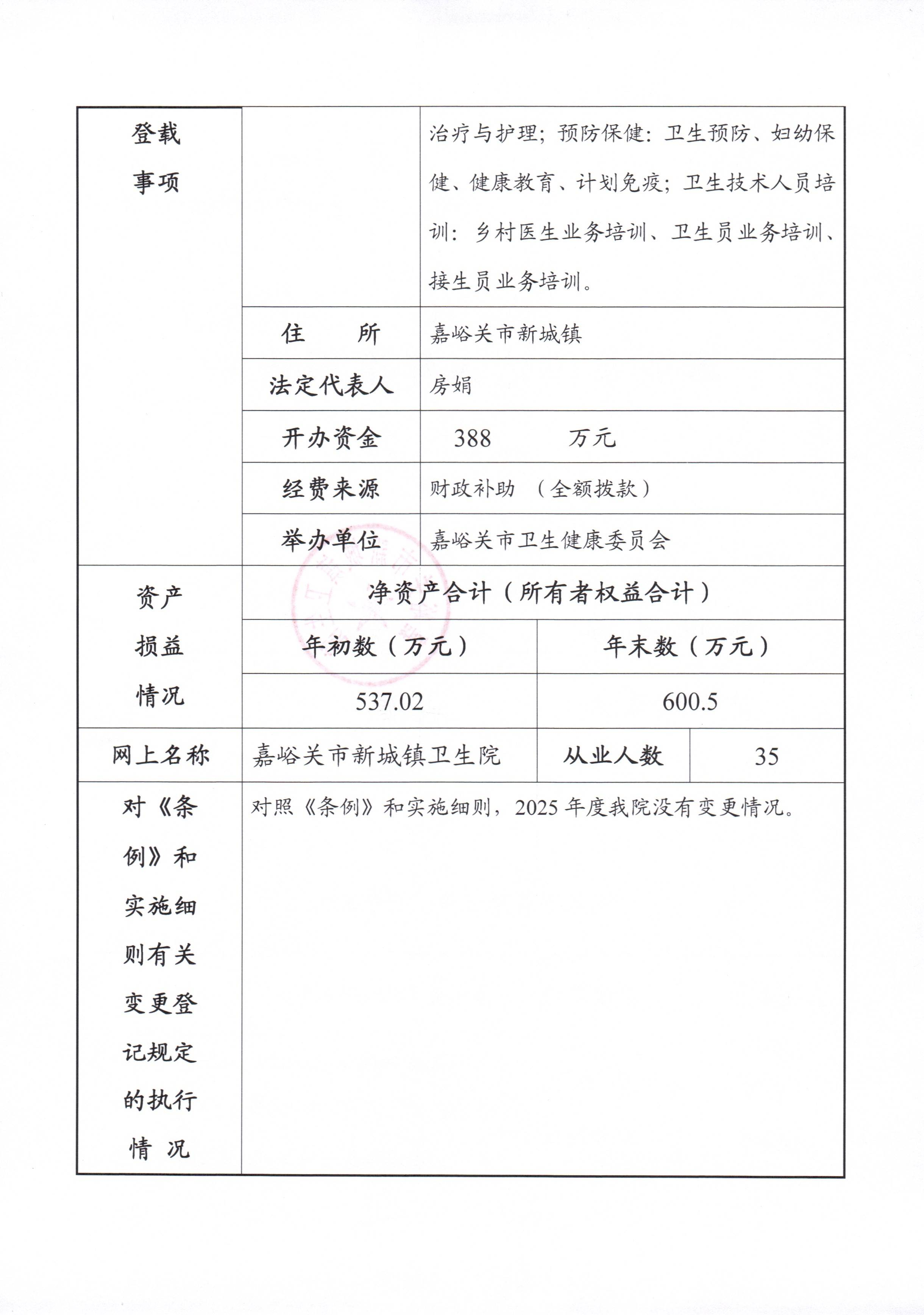 新城镇卫生院2025年度事业单位法人年度报告书