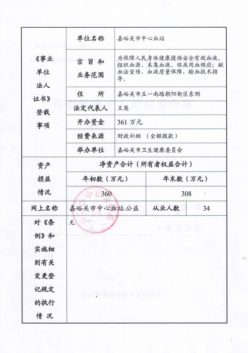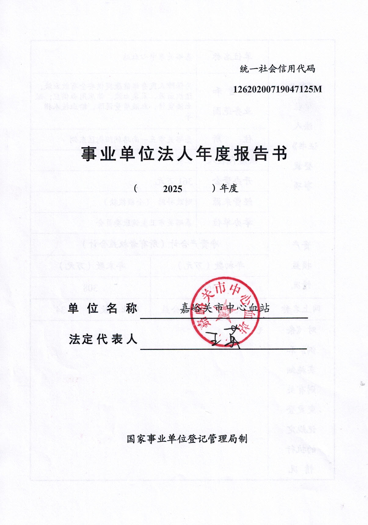 嘉峪关市中心血站事业单位法人(2025)年度报告书