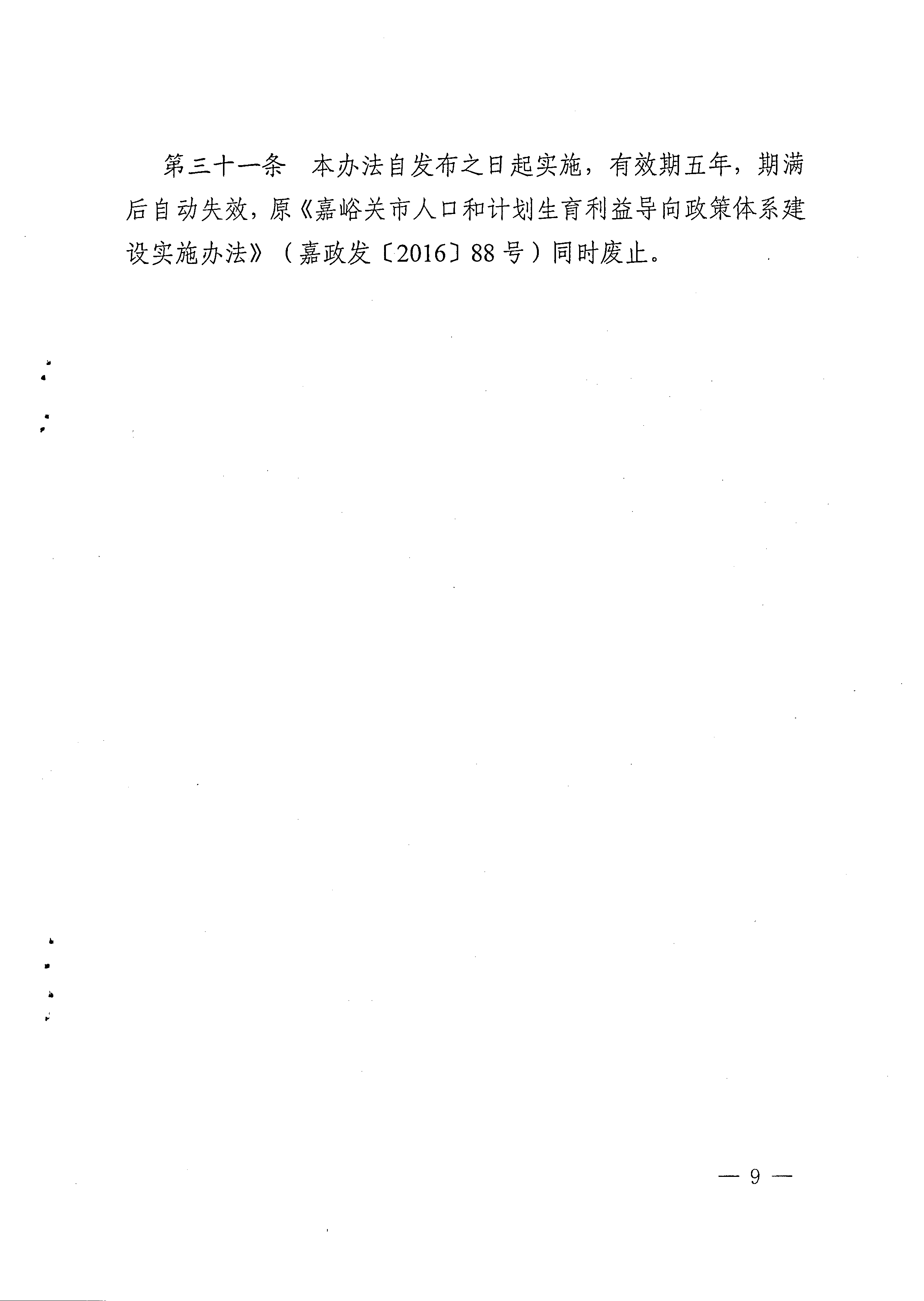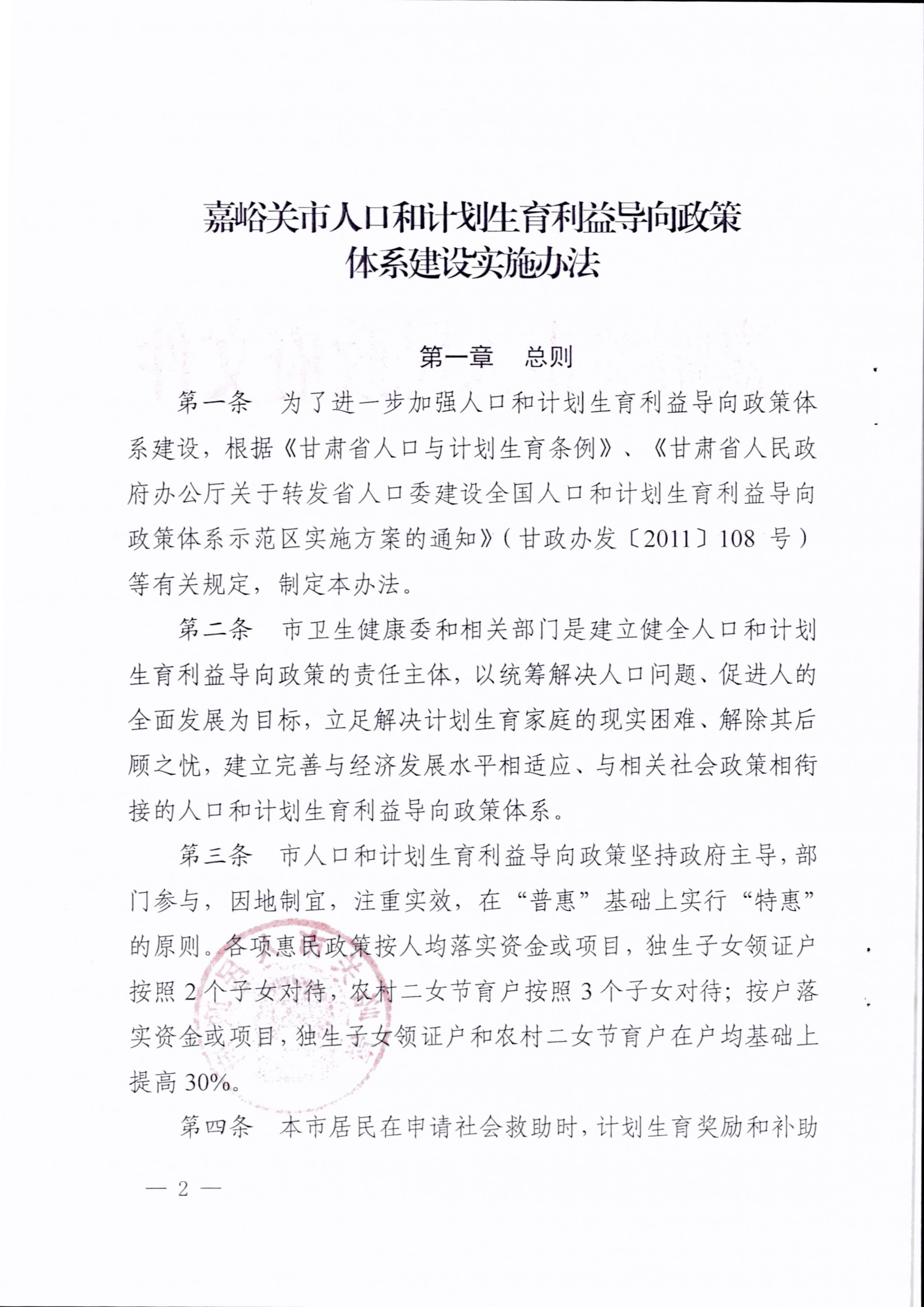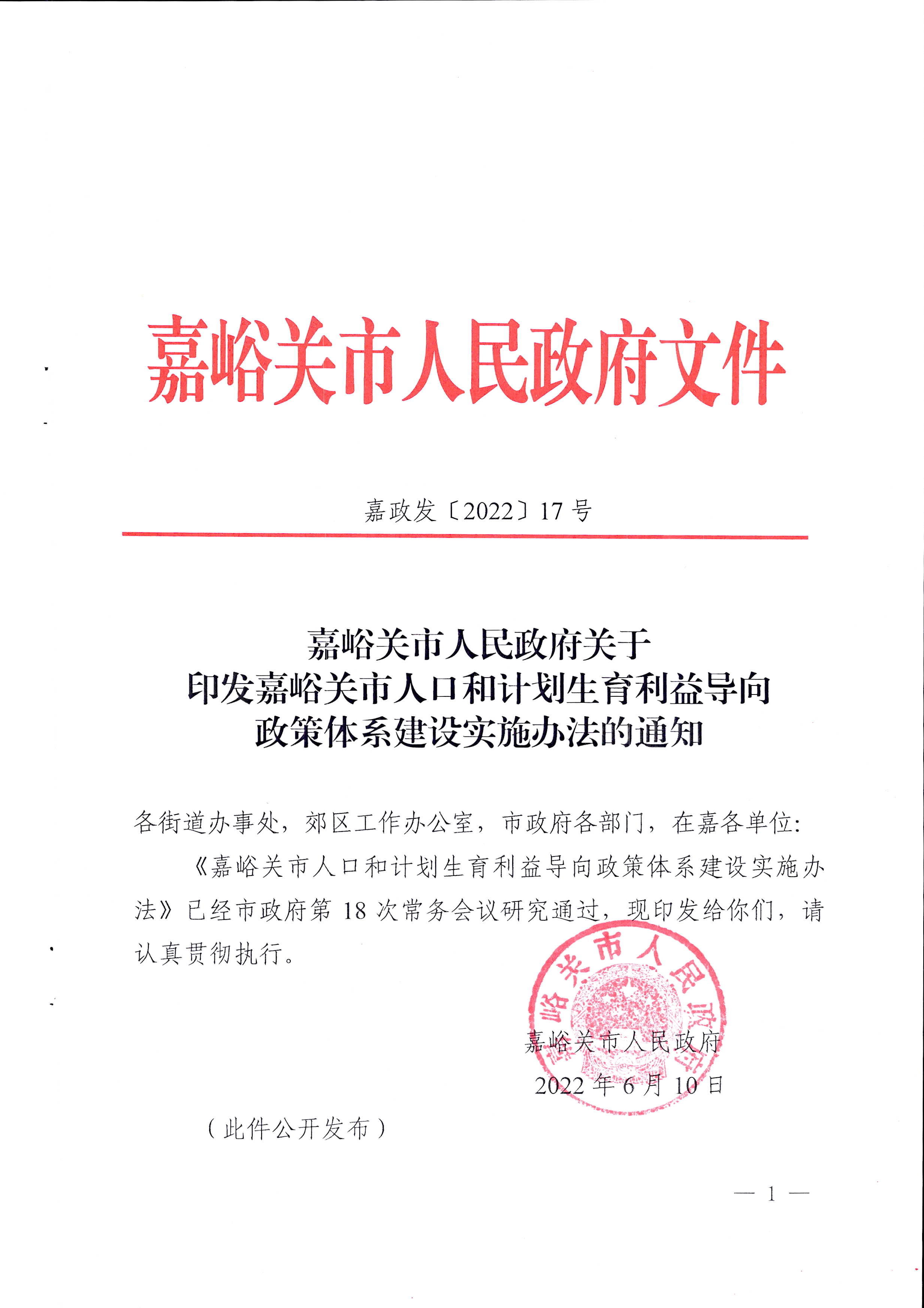 关于印发嘉峪关市人口和计划生育利益导向政策体系建设实施办法的通知