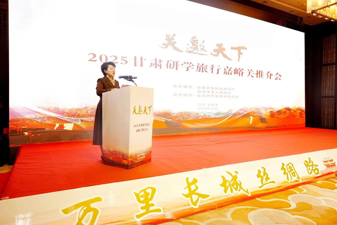 在推介环节,嘉峪关市文化和旅游局负责人系统介绍了全市丰富的文旅资源。聚焦于“今冬明春”旅游市场,重点发布了一系列诚意满满的优惠政策,涵盖景区门票减免、酒店住宿折扣、团队交通优惠等多个方面,以此真诚邀请广大游客和研学团队,亲身体验嘉峪关的深厚历史与独特风情。