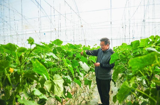 时下,新城镇野麻湾村温室大棚的精品黄瓜成熟上市,种植户忙着采摘、管护作物。这是4月5日,游客在采摘黄瓜。融媒体中心记者 高深 摄
