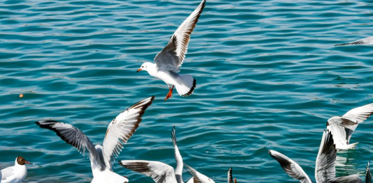 清明时节,讨赖河生态文化景区碧波荡漾,鸥鸟翔集,与远处的雪山构成一幅美丽的生态画卷。