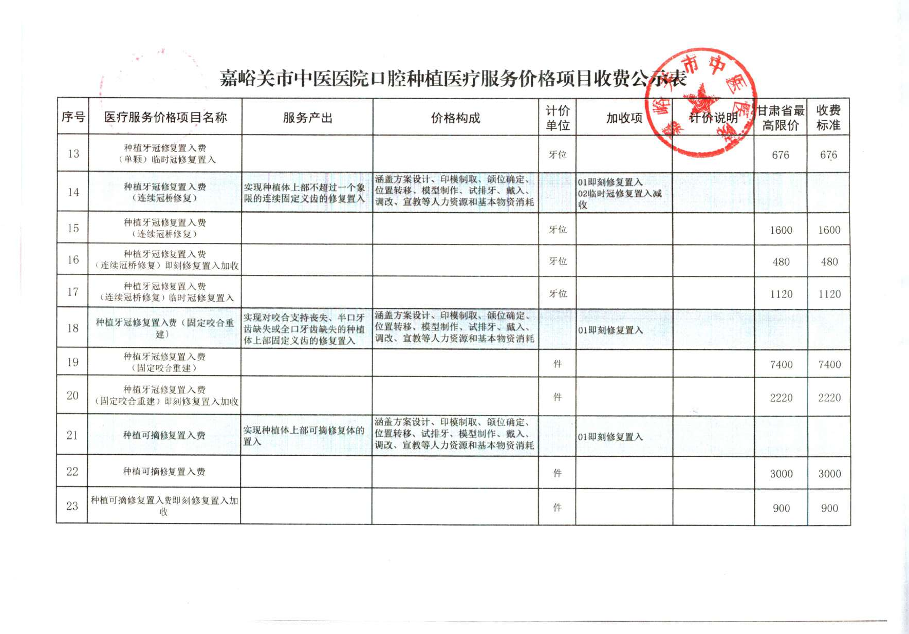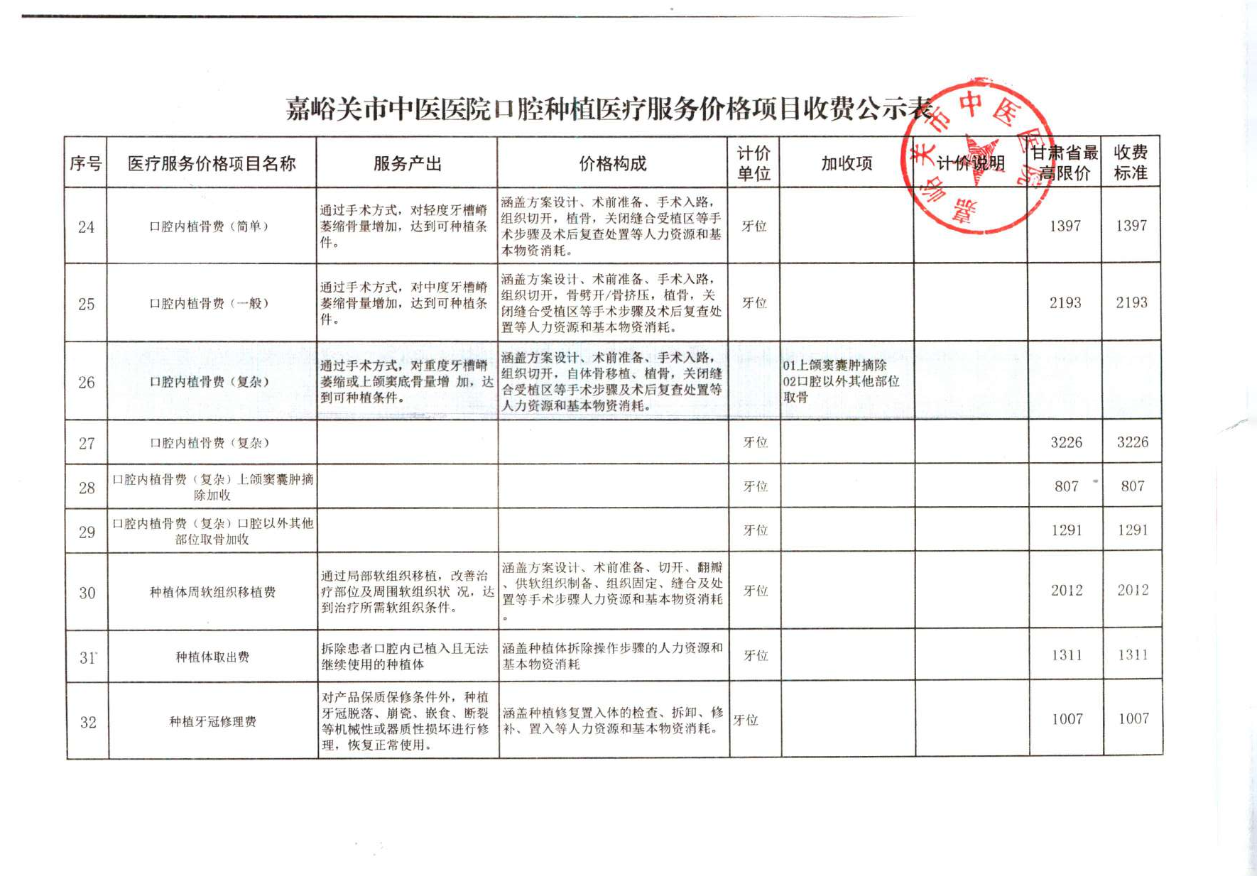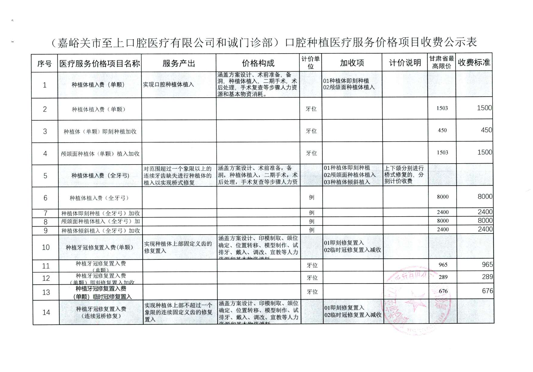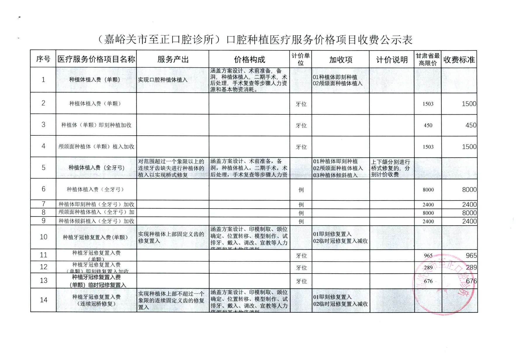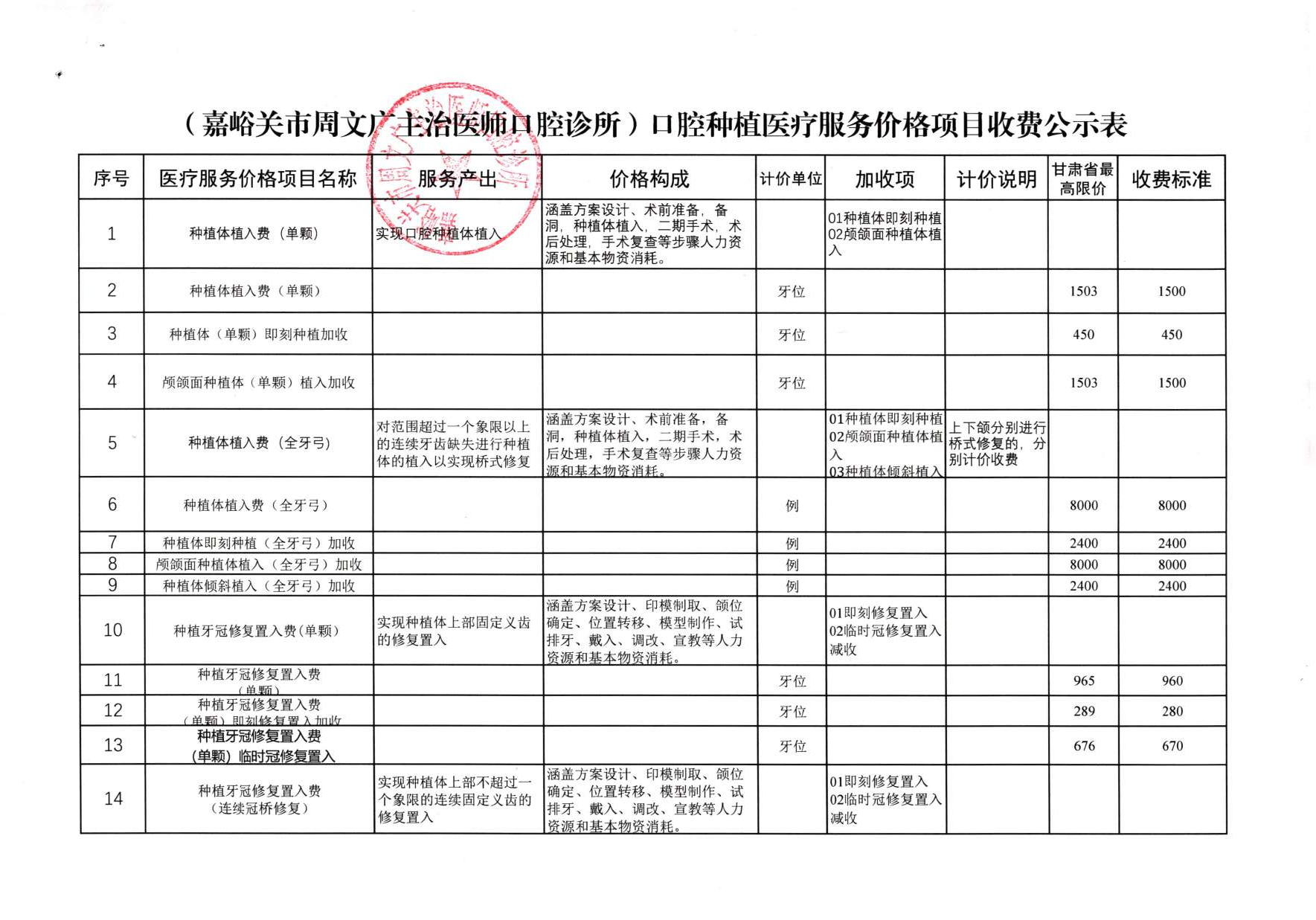 嘉峪关市开展口腔种植医疗服务机构名单及各医疗机构现行医疗服务价格项目公示