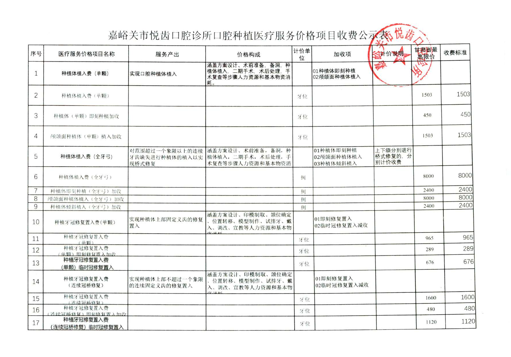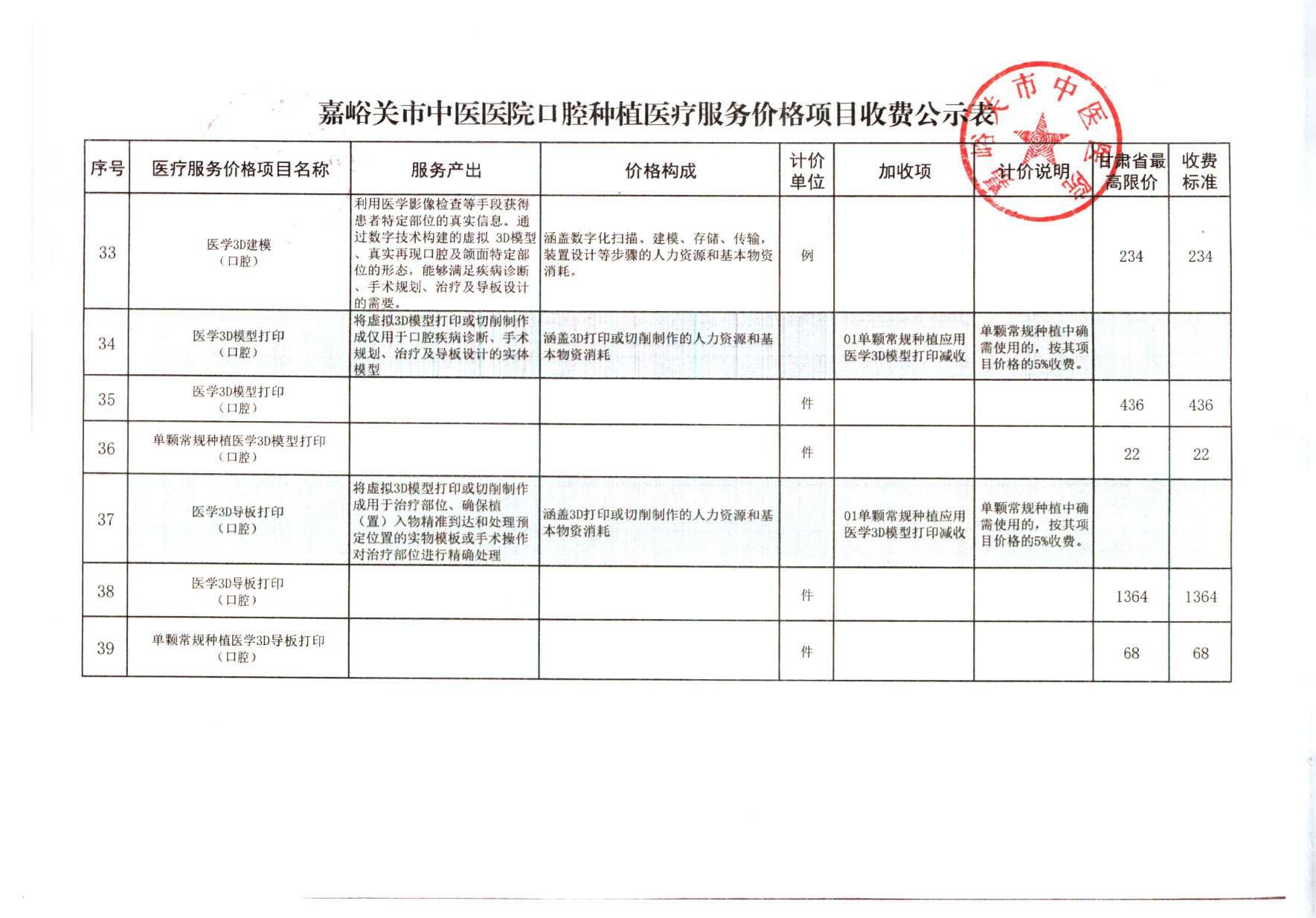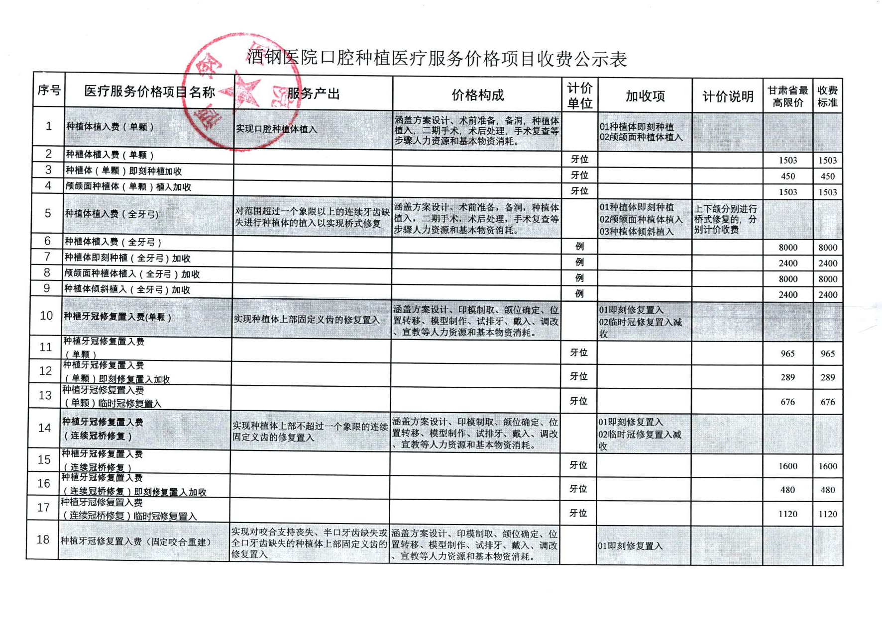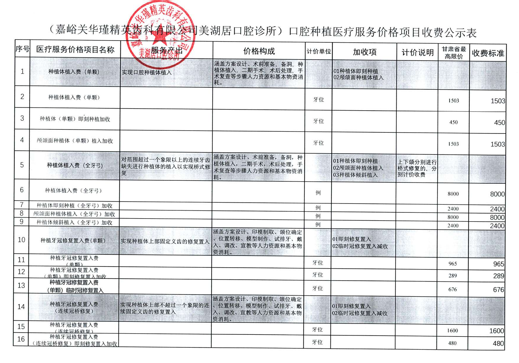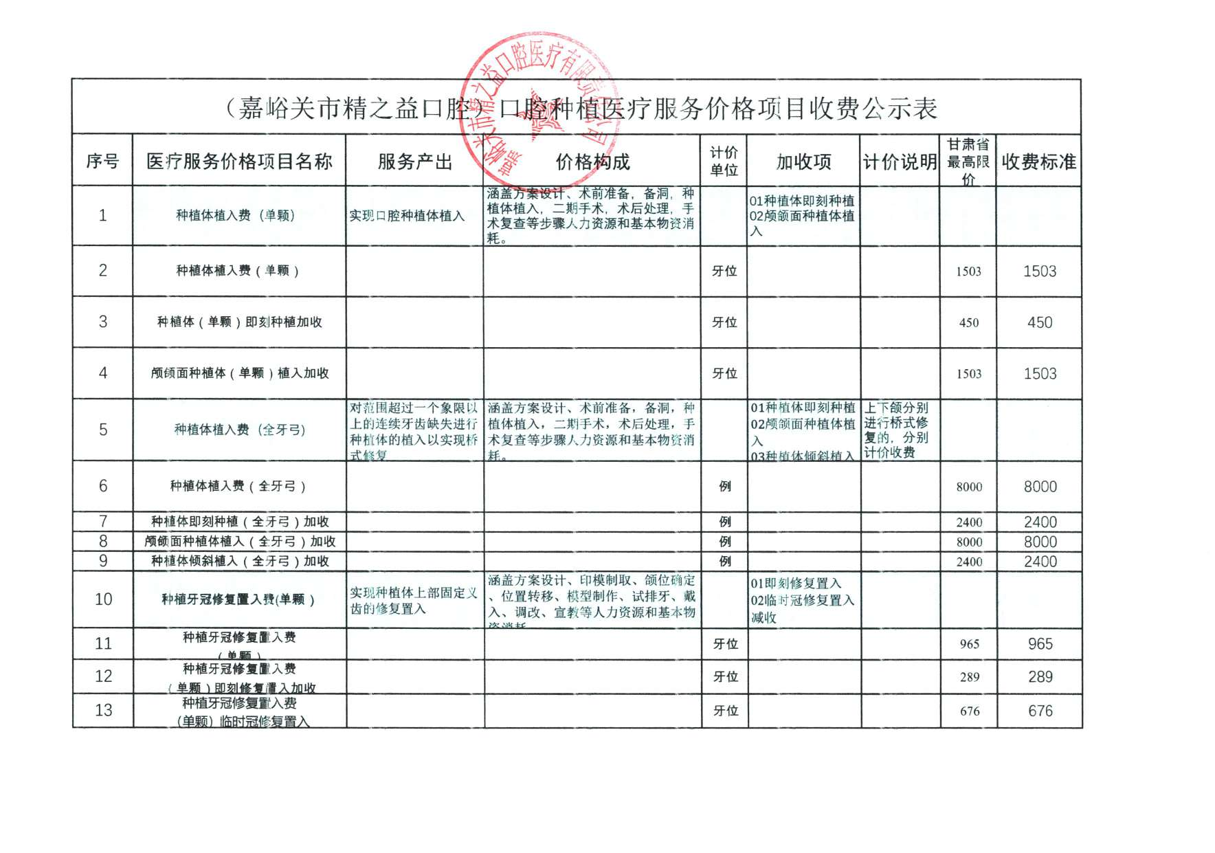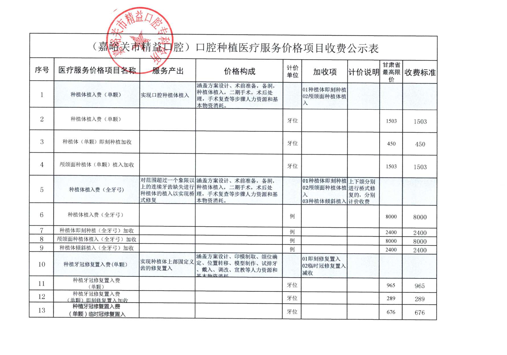 嘉峪关市开展口腔种植医疗服务机构名单及各医疗机构现行医疗服务价格项目公示