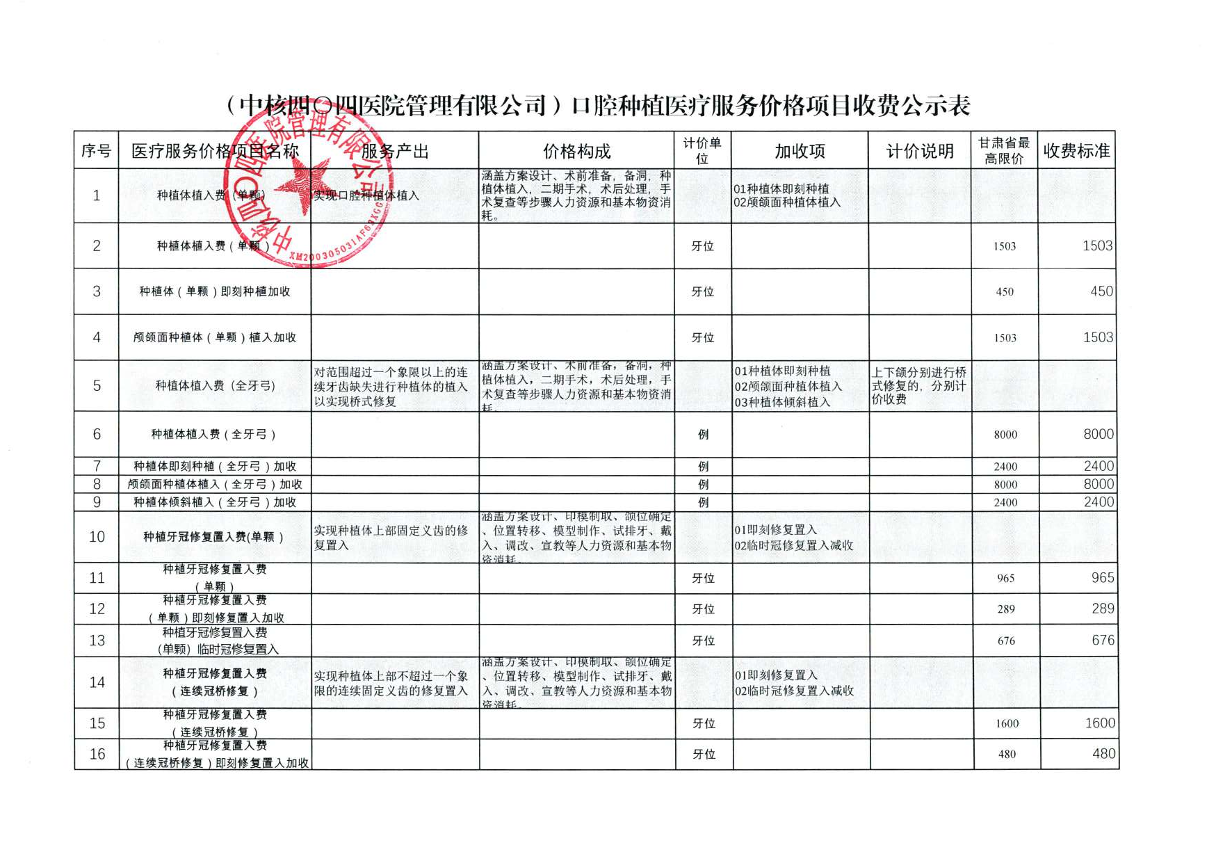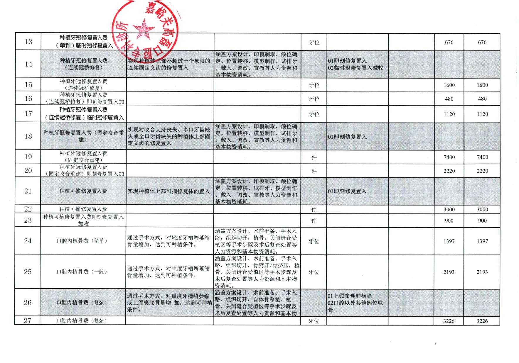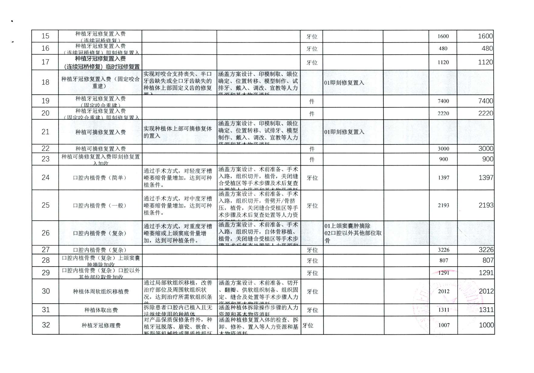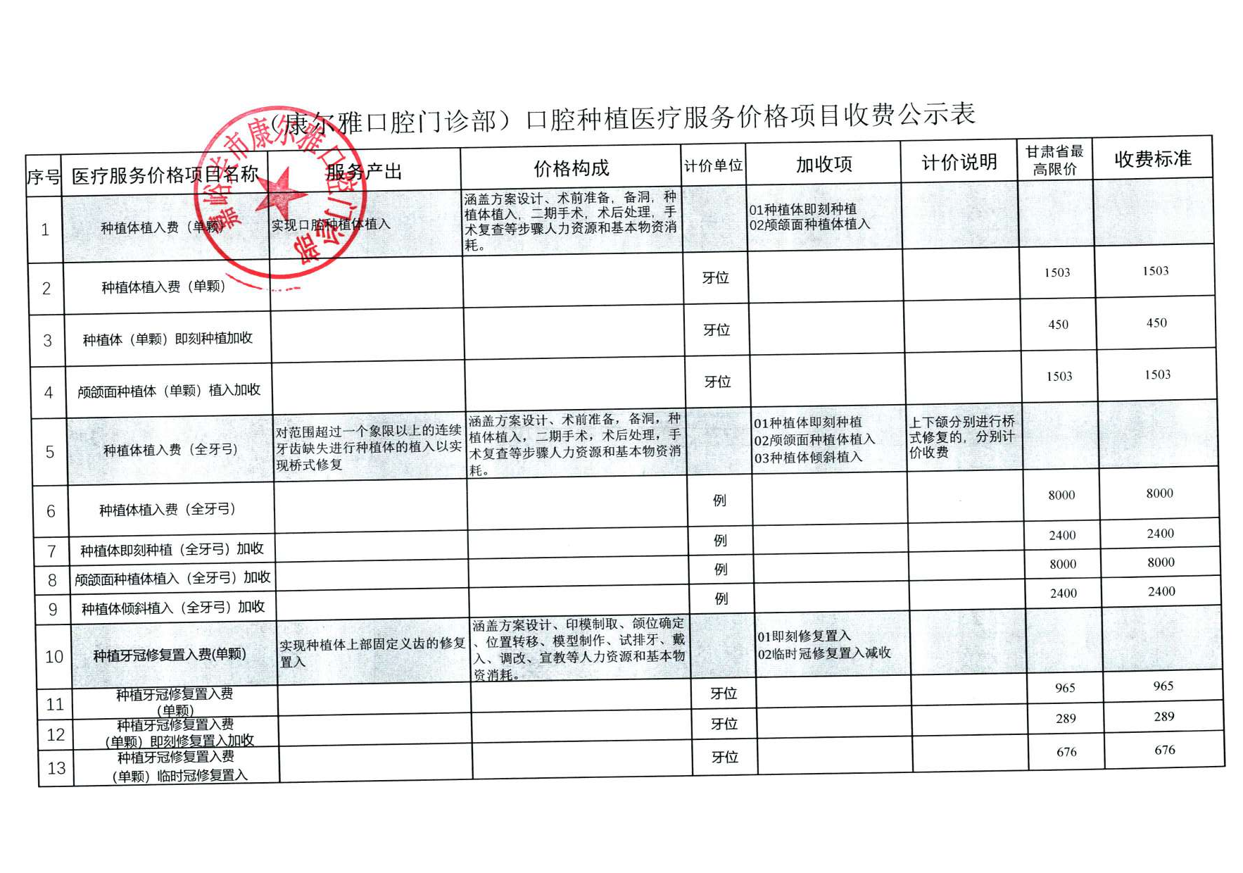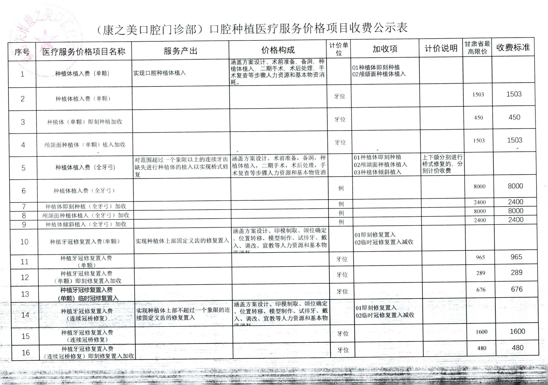 嘉峪关市开展口腔种植医疗服务机构名单及各医疗机构现行医疗服务价格项目公示