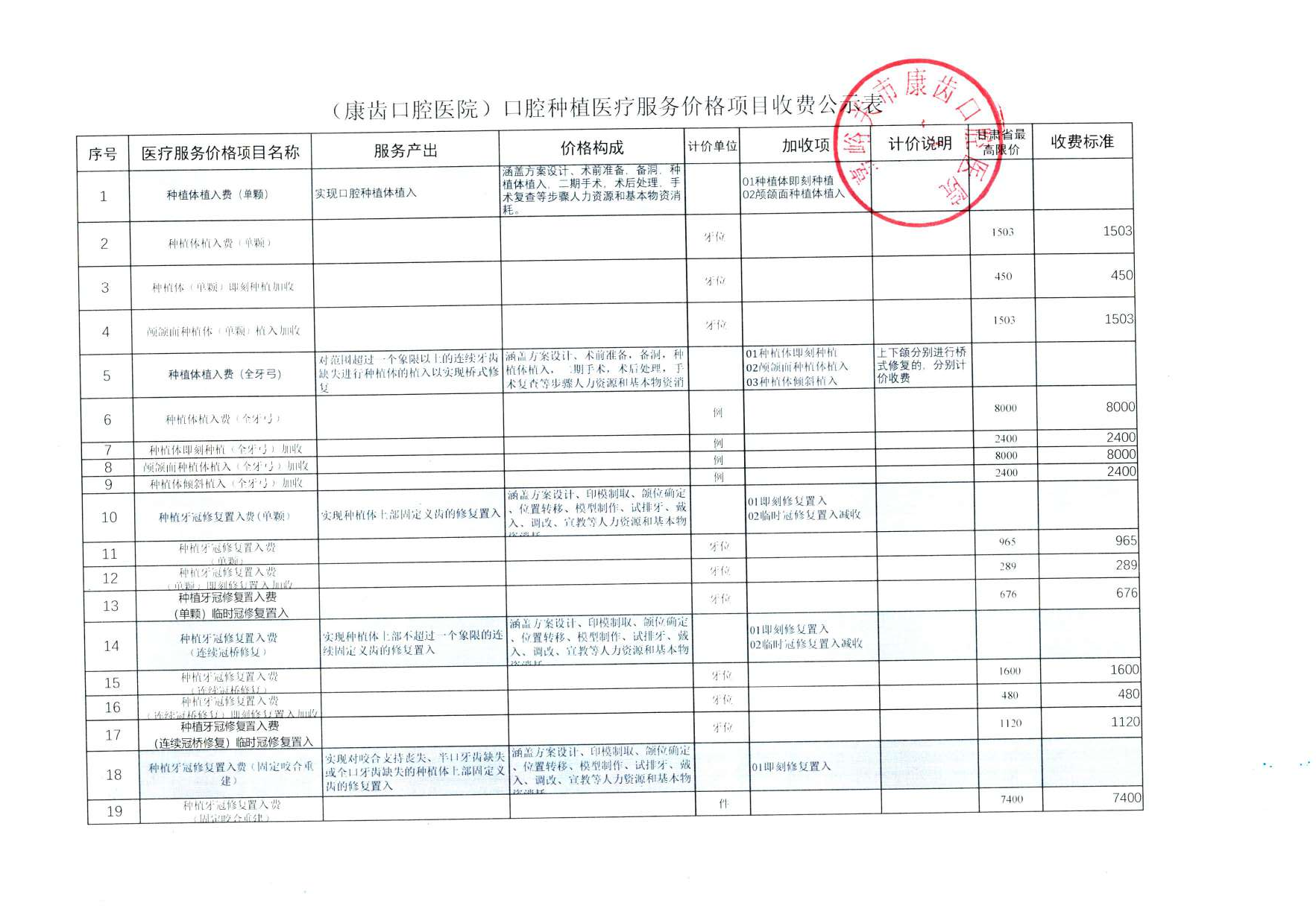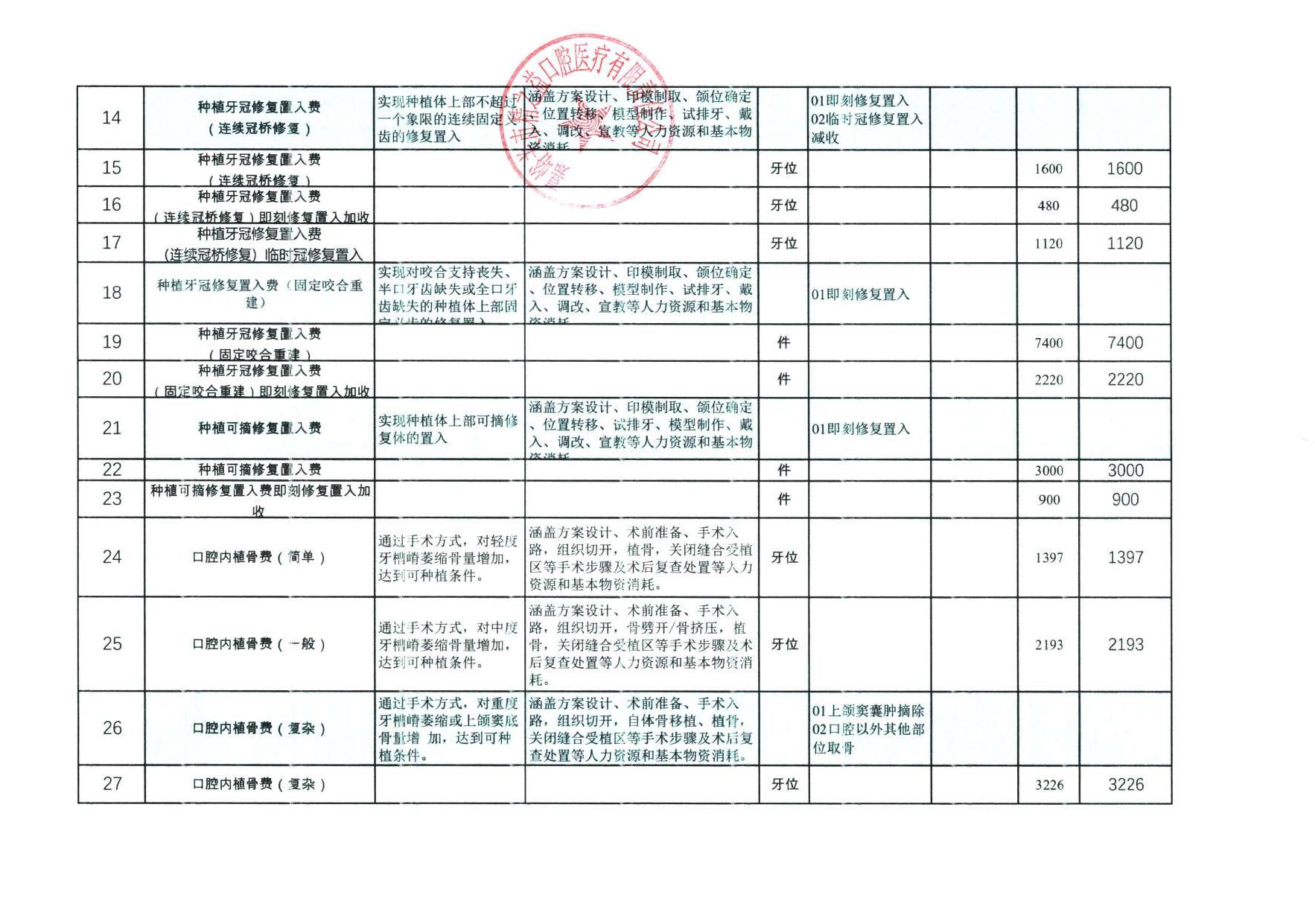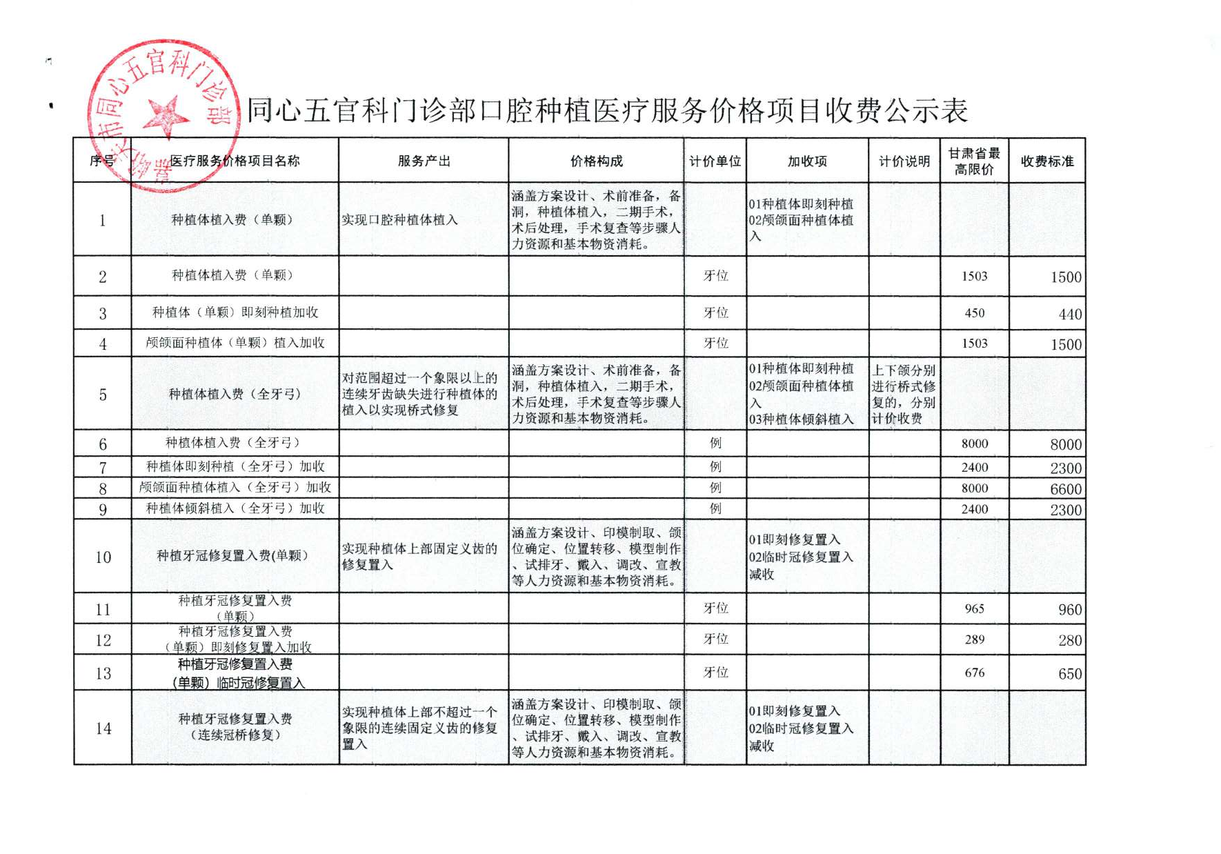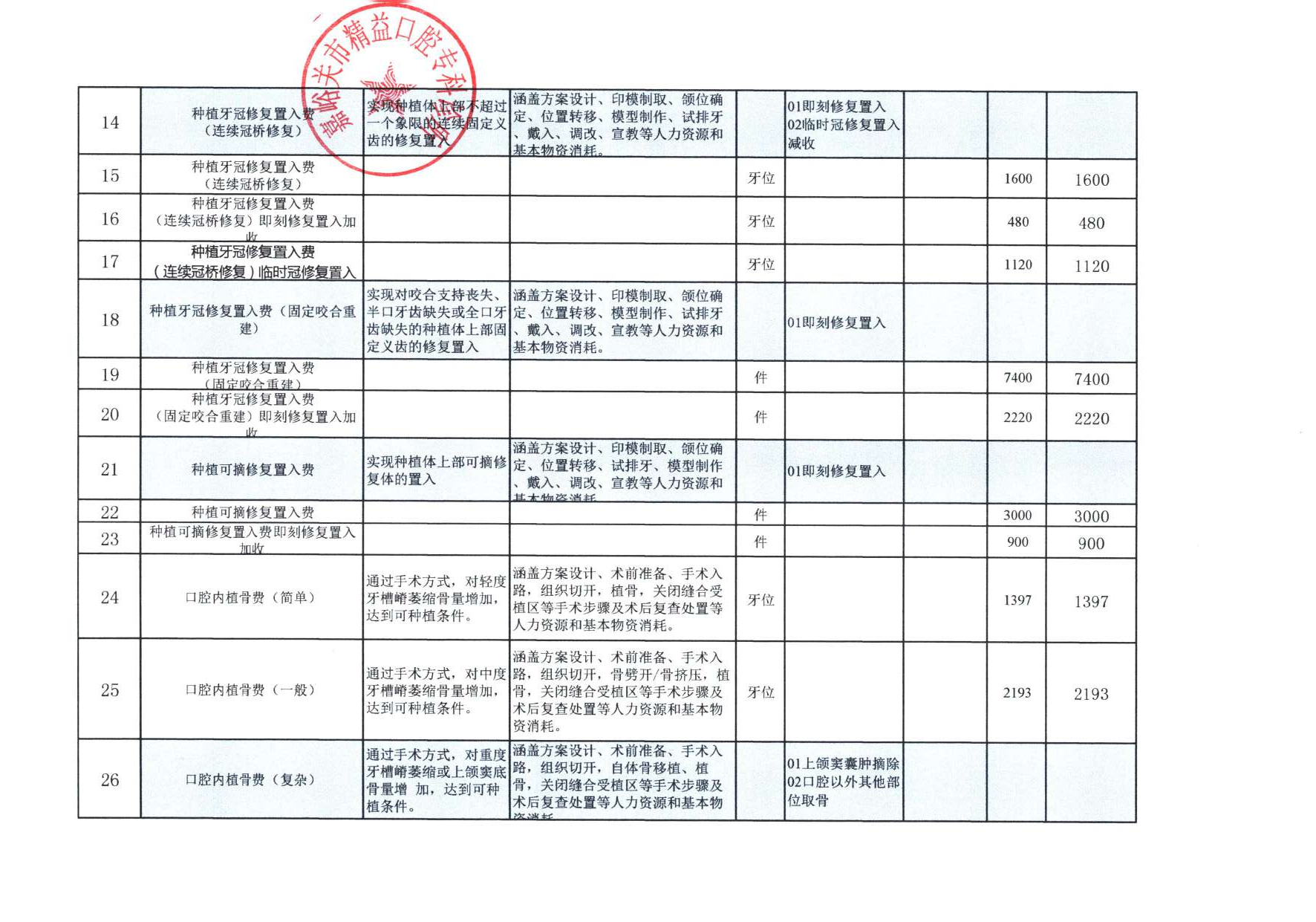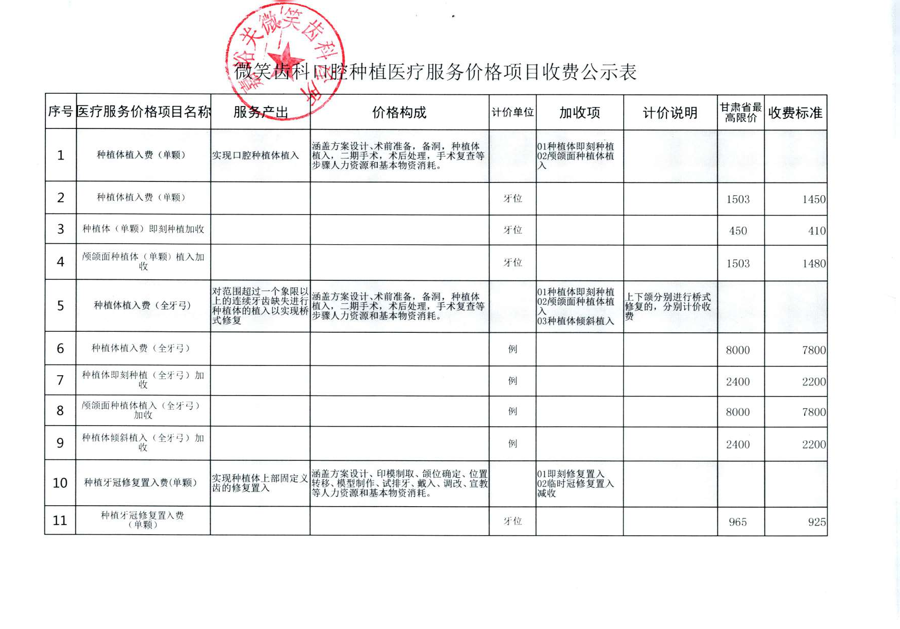 嘉峪关市开展口腔种植医疗服务机构名单及各医疗机构现行医疗服务价格项目公示