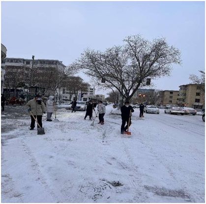 由于近期持续降温天气,室外温度很低,路面积雪有的融化结冰,有的被过往车辆压成厚实的雪板,给清除工作带来一定的难度,但全体职工不畏严寒,干劲十足,使用铁锹、铁铲等工具一点一点地铲除着路面上的残冰残雪,用实际行动传递着温暖和关怀,确保交通安全和群众正常生活。