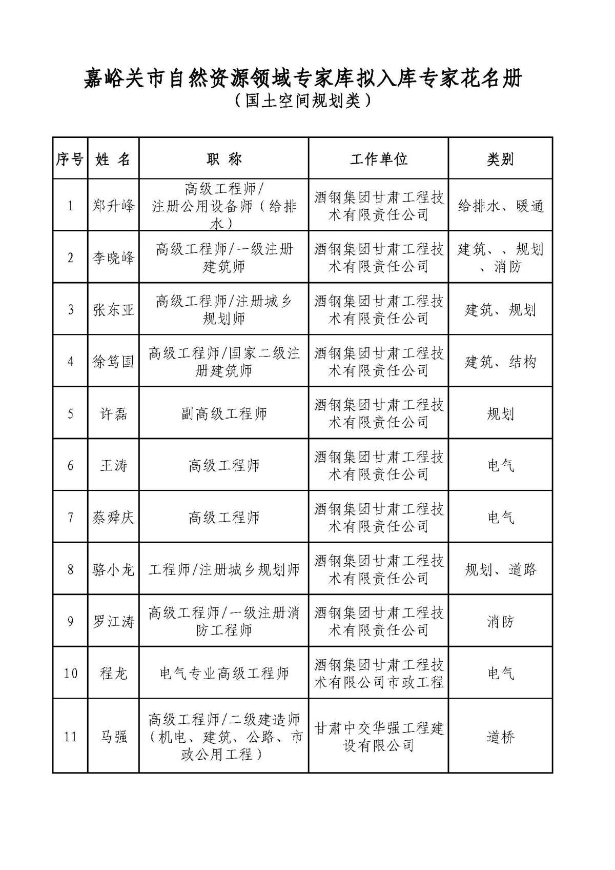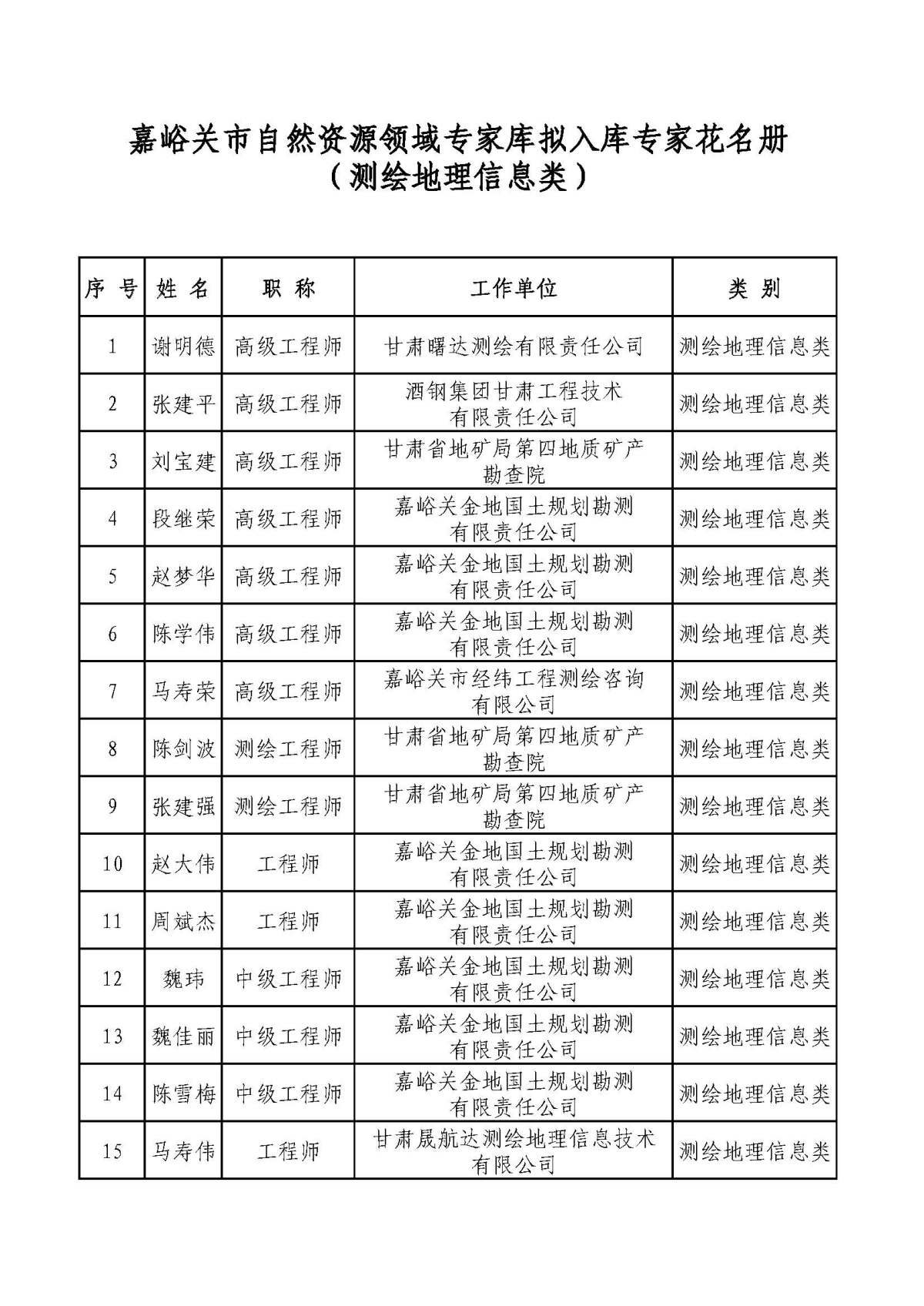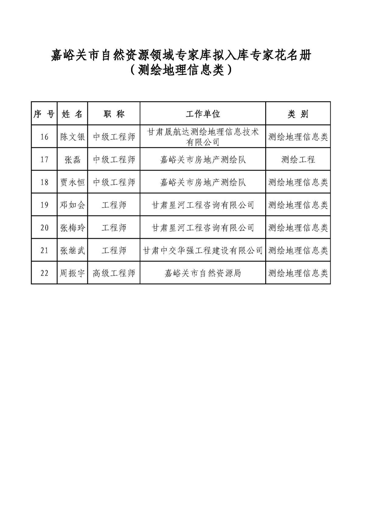 附件:嘉峪关市自然资源领域专家库拟入库专家名单