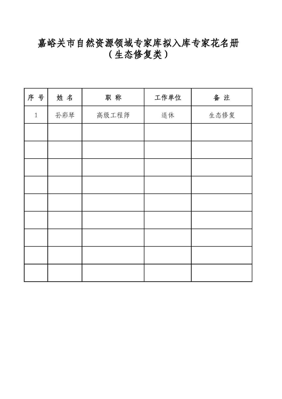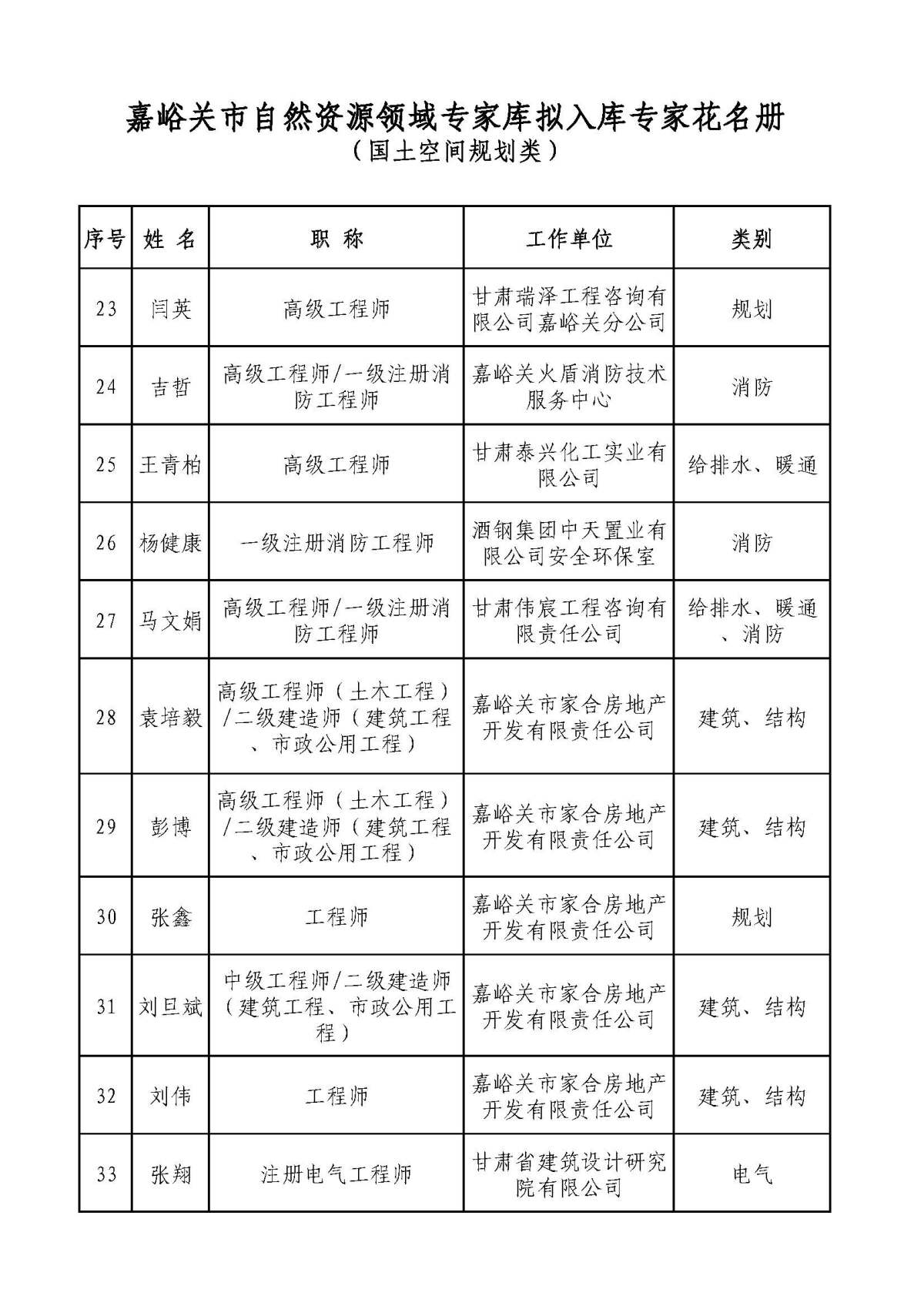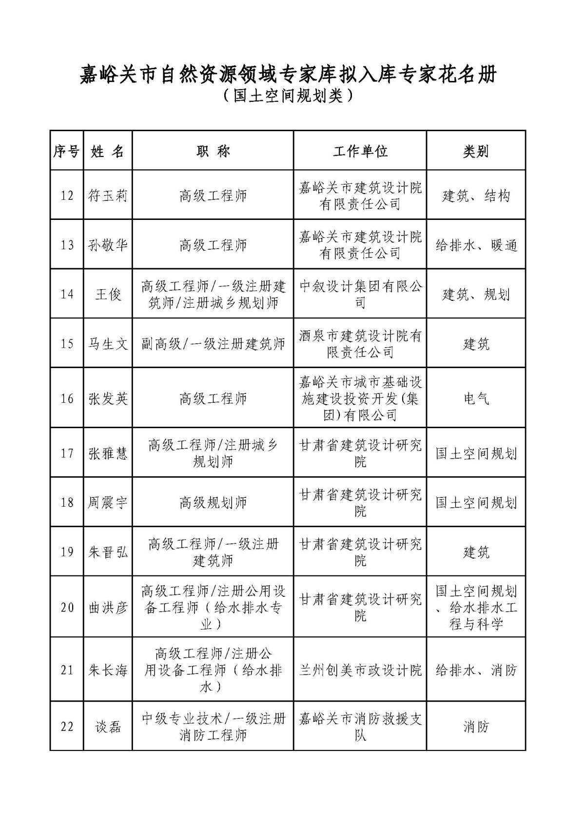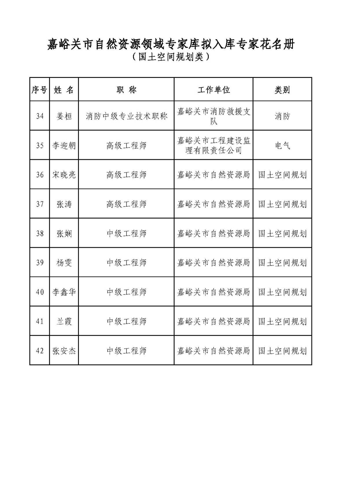 附件:嘉峪关市自然资源领域专家库拟入库专家名单