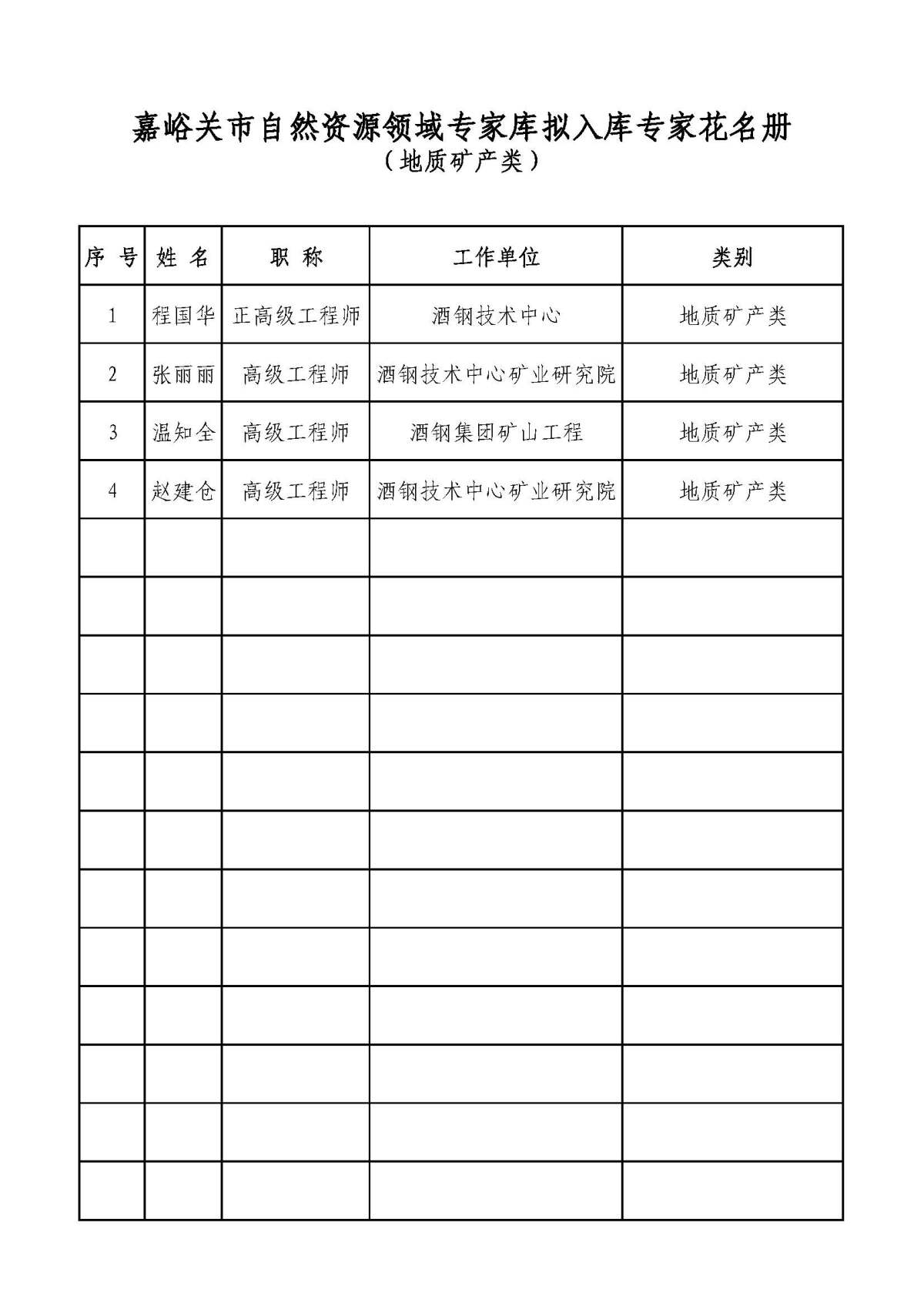 关于嘉峪关市自然资源领域专家库拟入库专家名单的公示