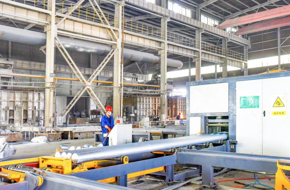 走进生产车间,耳畔是机器的轰鸣声,眼前是刚刚“新鲜出炉”的一排排铝棒,铸造机、切割机等设备运行的声音此起彼伏,现场呈现出一派争分夺秒、加快生产的繁忙景象。