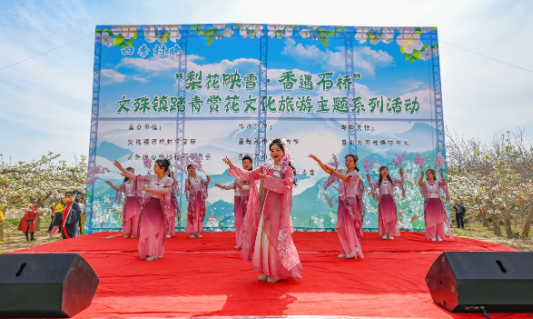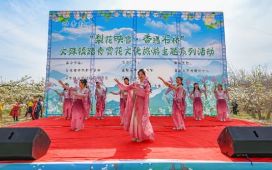 4月26日,文殊镇踏青赏花文化旅游主题系列活动在石桥村开幕,争相盛开的千亩梨花、精彩纷呈的文艺演出、创意有趣的互动节目,吸引了许多市民游客赏花游玩、打卡拍照。融媒体中心记者 李巍 摄