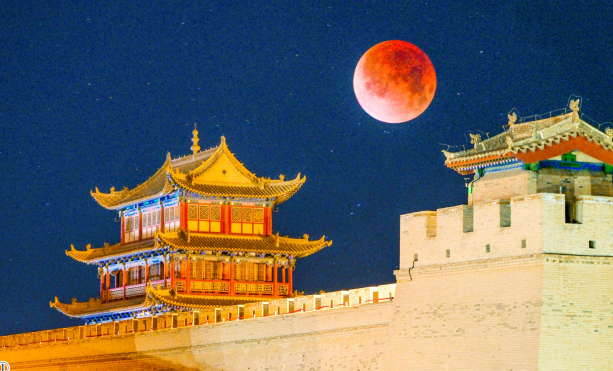 图①为9月8日凌晨,月全食现身嘉峪关上空。融媒体中心记者 毛富 摄