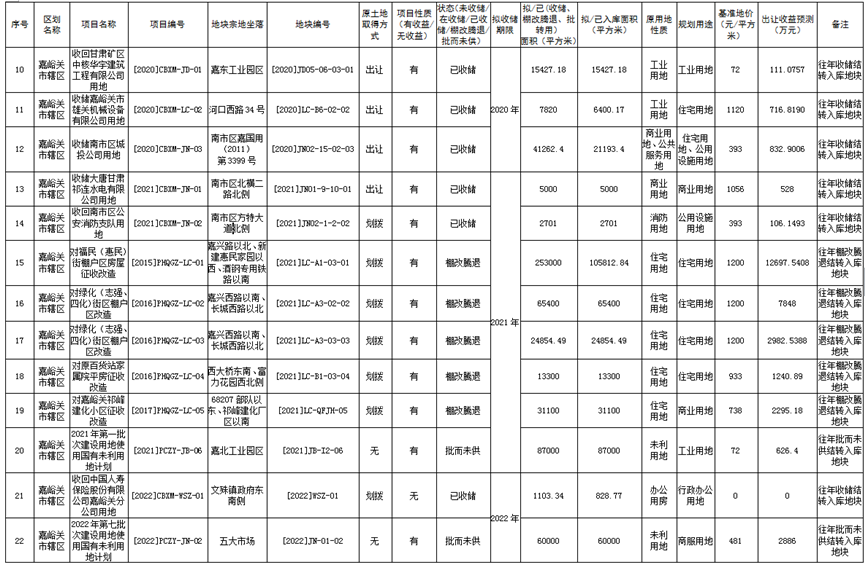 2.嘉东工业园区范围内往年收储结转入库项目3个(7宗),面积:50.1075公顷。