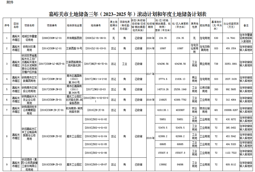附件:嘉峪关市土地储备三年(2023-2025年)滚动计划和年度土地储备计划表