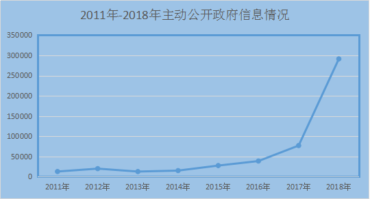 (一)主动公开政府信息的数量。2018年,我市主动公开信息总数291406条,比2017年增加279.49%。其中,公开规范性文件13件;刊发政府公报3期共119条;通过政府网站公开信息数47853条;通过政务微博公开信息数10197条;通过政务微信公开信息数19849条;通过广播、电视、报刊等其他方式公开信息数213375条。