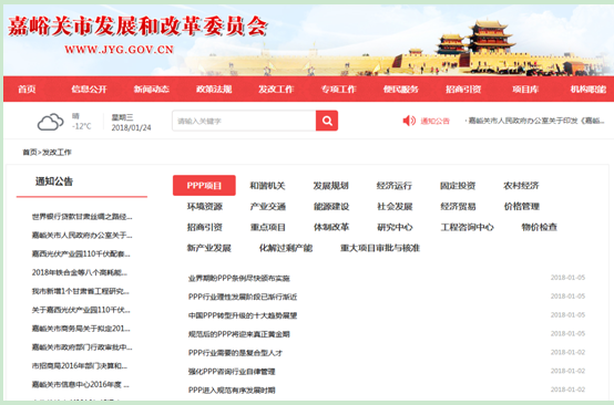 4.重大建设项目信息公开。重点围绕城市基础设施、节能环保、农林、水、土地整治等涉及公共利益和民生领域的政府投资项目,加大公开力度。市发改委在网站上设立了发改工作专栏,包括重大项目的审批核准,重大项目的实施等信息。及时发布固定投资,环境资源、产业交通、能源建设、PPP等重点项目等信息,定期发行《嘉峪关发展》,向社会主动公布相关信息。市建设局按照“及时、全面、准确”的原则,通过《嘉峪关日报》、《雄关周末》、《嘉峪关周刊》、部