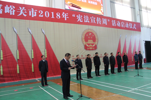 宣传活动启动仪式由市委常委、宣传部部长、市委全面推进依法治市工作领导小组法治宣传教育专项工作组组长李亦军同志主持,市委副书记、市长、市委全面推进依法治市工作领导小组副组长丁巨胜同志讲话,市委书记、市委全面推进依法治市工作领导小组组长李忠科同志宣布活动启动。启动仪式后,我局在市体育场综合馆内设置的法治宣传区,向市民发放《中华人民共和国宪法》《中华人民共和国行政处罚法》、《中华人民共和国行政强制法》、《中华人民共和国大气污染防治法》、《城市管理执法办法》、《无证无照经营查处办法》等法律法规宣传资料1200余份。市委书记李忠科同志亲切慰问了法治宣传区的每一位工作人员,走到我局宣传台时,李书记关切的指出,城市管理工作繁杂,一线执法队员很辛苦,执法人员要协调、处理好与行政相对人的关系,做好执法和服务工作。