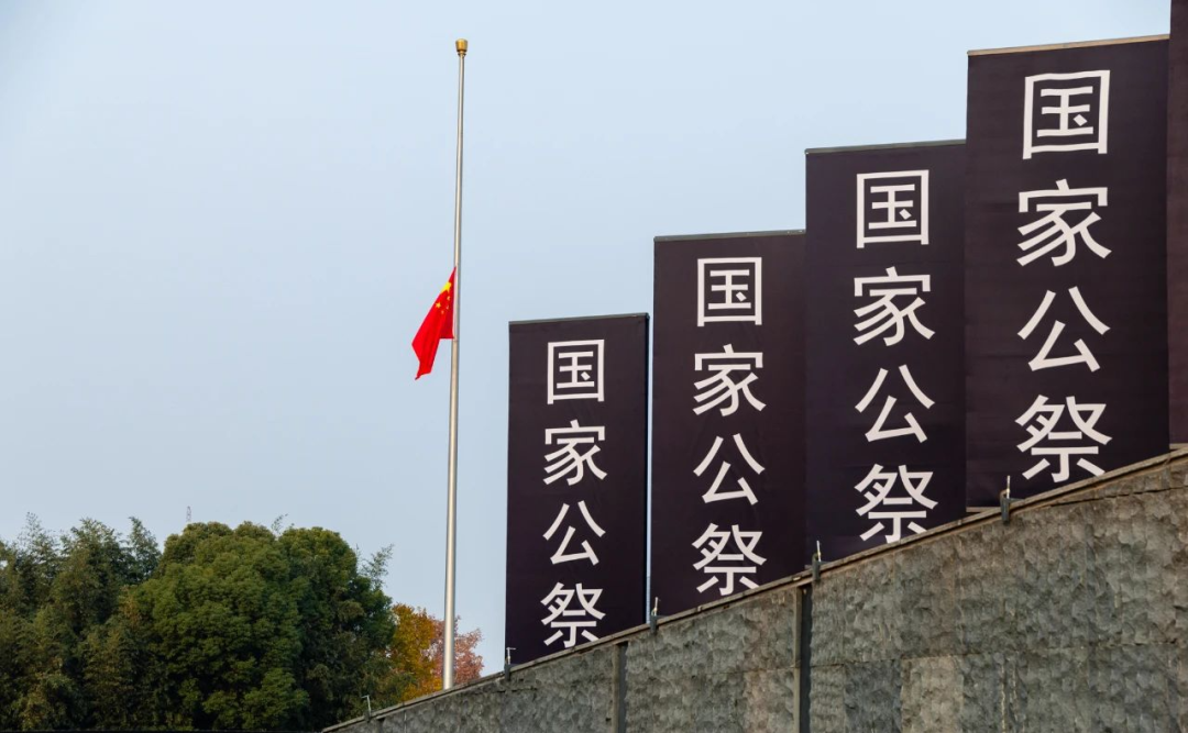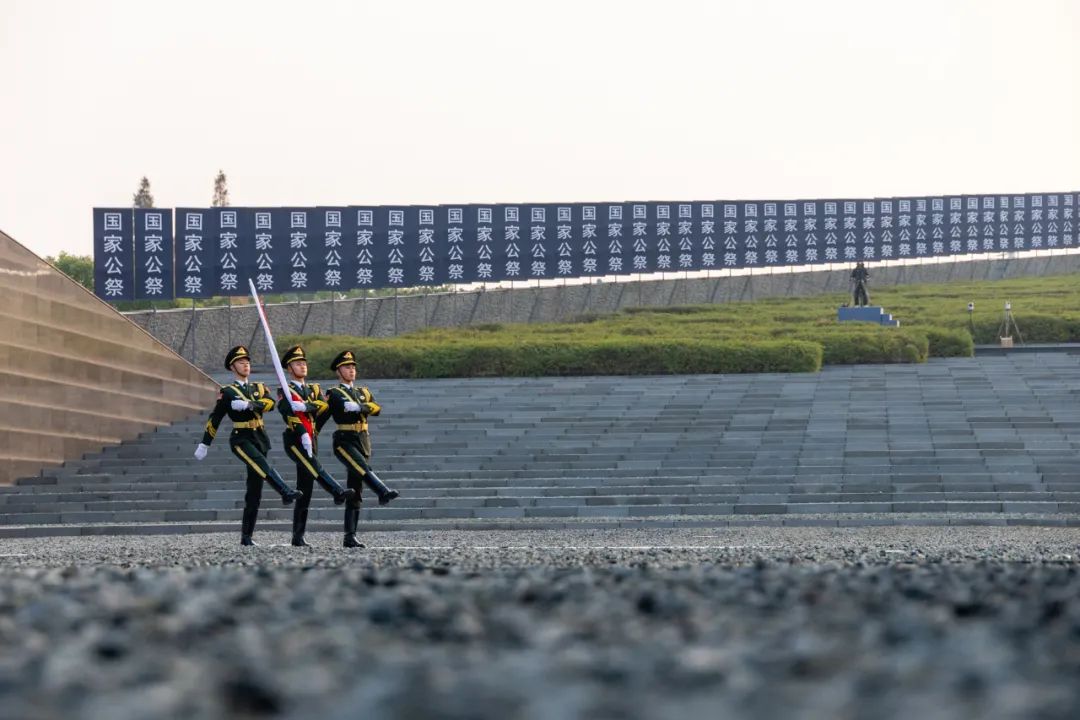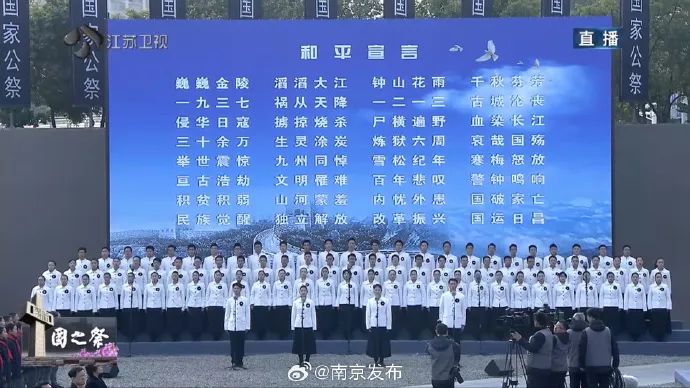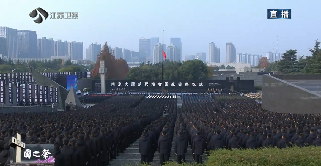 今天 南京大屠杀死难者国家公祭日 国家公祭广场庄严肃穆 侵华日军南京大屠杀遇难同胞纪念馆 南京大屠杀死难者国家公祭仪式 举行 各界人士代表共同撞响和平大钟 和平鸽翱翔在侵华日军南京大屠杀遇难同胞纪念馆上空 今天 我们以国家之名祭奠 8点整 中国人民解放军三军仪仗队 在侵华日军南京大屠杀遇难同胞纪念馆 将国旗升起后又徐徐降下 为南京大屠杀死难同胞 下半旗志哀 上午10:01 南京全城鸣响防空警报 伫立一分钟 为南京大屠杀死难者默哀 ▲南京 中山码头丛葬地 ▲南京 清凉山丛葬地 ▲南京 北极阁丛葬地 ▲南京抗日航空烈士纪念馆 ▲南京 新街口 ▲南京长江大桥 重温昨日的历史耻辱 是为了汲取今日奋进的动力 看那《和平宣言》,字字铿锵—— “和平发展,时代主题 民族复兴,世代梦想 龙盘虎踞,彝训鼎铭 继往开来,永志不忘” 我们必须牢记历史 不只是记住民族的伤痛 更有那不屈的抗争 每一个中华儿女都要谨记: 吾辈当自强! 我们牢记历史 更不是为了宣扬延续仇恨 而是要以史为鉴 唤起每一个善良的人 对和平的向往和坚守! 侵华日军南京大屠杀遇难同胞纪念馆和平雕塑 铭记历史,勿忘国耻! 振兴中华,吾辈自强!
