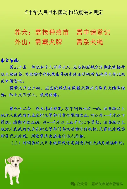狗是人类忠实的朋友。狗对主人往往很亲近、很忠诚,但也正因为这种忠诚,它对陌生人往往很警觉、很警惕,犬只伤人以及狂犬病等均需时刻防范。文明养犬才能保证大家更安全、社会更和谐。为形成全社会良好养犬氛围,我们将持续对养犬相关法规和养犬知识进行宣传,请大家持续关注。