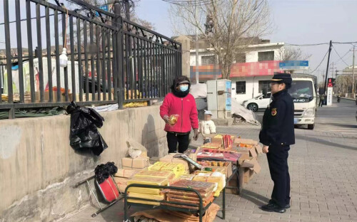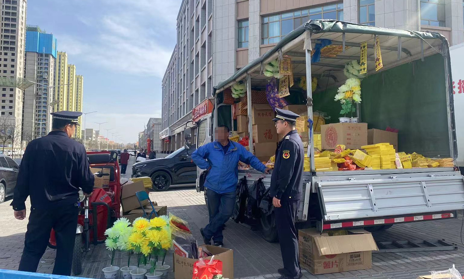 市城市管理执法局长城综合执法支队始终坚持“721”工作法,宣传教育与文明劝导相结合,对辖区重点路段及市场、商超、学校等周边进行管控,严格治理流动商户、店外经营、乱堆乱放等违法行为,对违规占道售卖祭祀用品的行为进行清理规范,对随意焚烧纸钱等不文明祭扫行为进行教育劝导,引导流动摊点经营者在规定区域内经营,对于多次不听劝导违规违法经营的,坚决予以取缔。