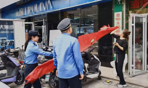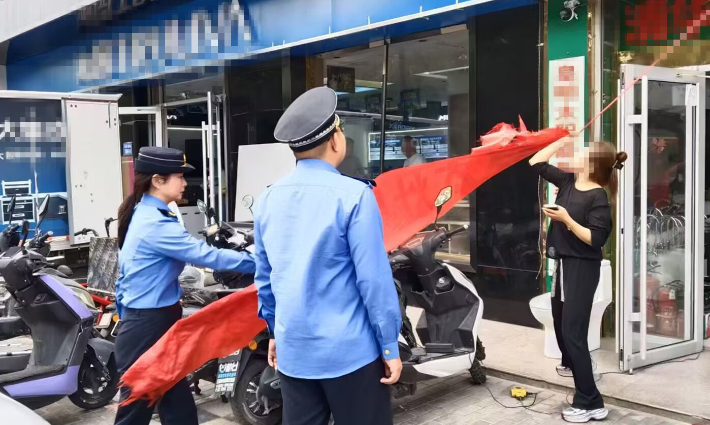 执法人员积极向沿街商户及群众讲解户外广告设置相关法律法规,提升大家对城市管理法律法规的知晓率和守法意识,动员商户自行清理,建议商户采用更美观、传播率更高和更安全环保的宣传方式,使广大商户深刻认识到规范设置横幅广告的重要性,赢得广泛理解与支持。在做好宣传工作的同时执法人员按照时间节点要求,对各主次干道横幅广告全面彻底整治,对限期整改不到位及无主条幅依法依规予以清理,恢复整洁优美市容环境秩序。建立灵活高效巡查机制,不定时对辖区内横幅广告开展拉网式排查整治。一旦发现违规设置或到期未清理的宣传横幅,立即清理,确保清理工作全面、彻底,不留死角。截至目前,清理违规横幅40余条。