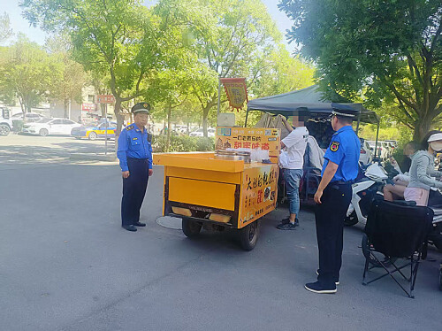 行动中,执法人员根据流动商户经营时间集中在上下学高峰期的实际情况,对各大校园周边进行高频次巡查管理。执法人员提前到岗,对学校大门附近、周边主次干道各个路口逐一排查。在对违规占道流动商户耐心宣传相关法律法规、告知占道经营危害性的同时,有序引导流动商户进入指定区域规范经营,确保上下学高峰期校园周边无摆摊设点、占道经营、沿街叫卖等违法违规行为,为广大师生营造干净整洁的校园周边环境。截至目前,规范校园周边店外占道经营64家,清理流动摊点89处,规范共享单车22辆,劝导教育乱拉挂、乱张贴、乱摆放行为16起。