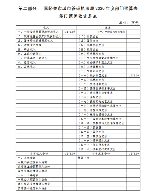 第二部分 嘉峪关市城市管理执法局2020年度部门预算表