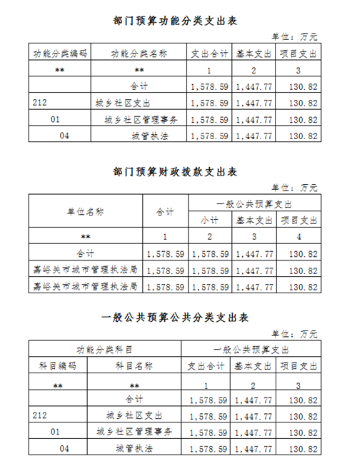 嘉峪关市城市管理执法局2020年度一般公共预算财政拨款支出1578.59万元,全部用于城乡社区支出