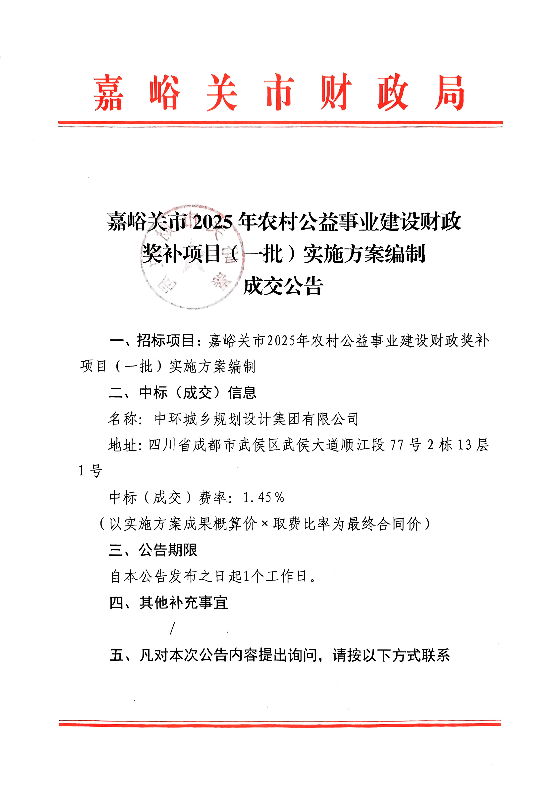 嘉峪关市2025年农村公益事业建设财政奖补项目(一批)实施方案编制的公告