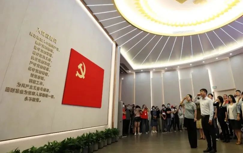 2021年6月3日,党员在上海中共一大纪念馆里重温入党誓词。新华社记者 刘颖 摄