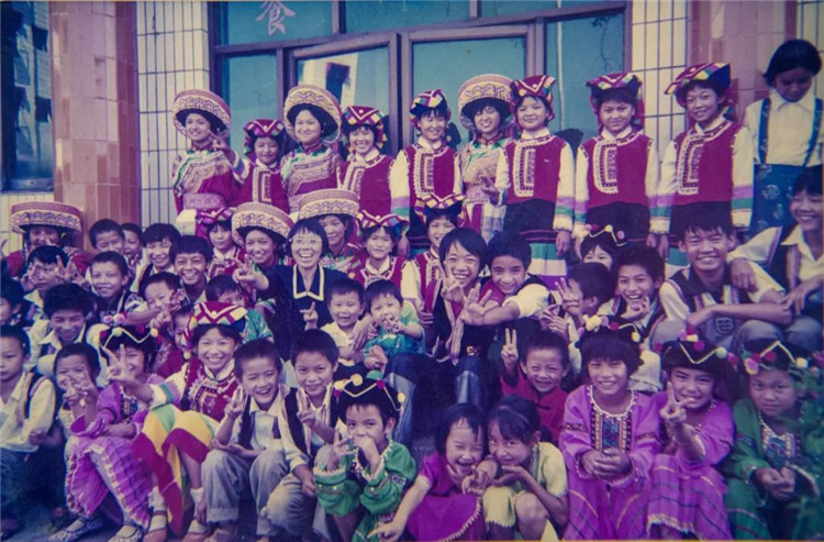 “七一勋章”获得者张桂梅与华坪儿童福利院的孩子们在一起(资料照片)。新华社发