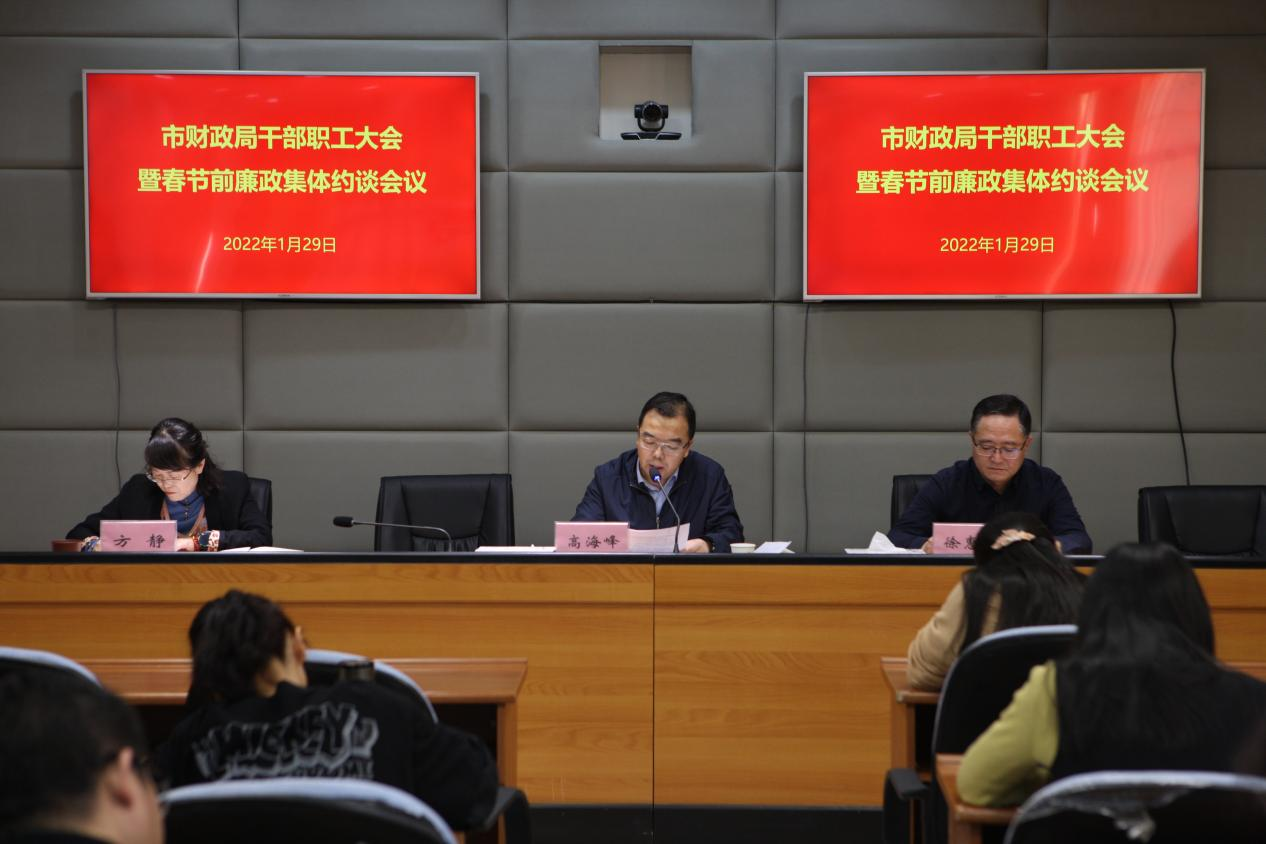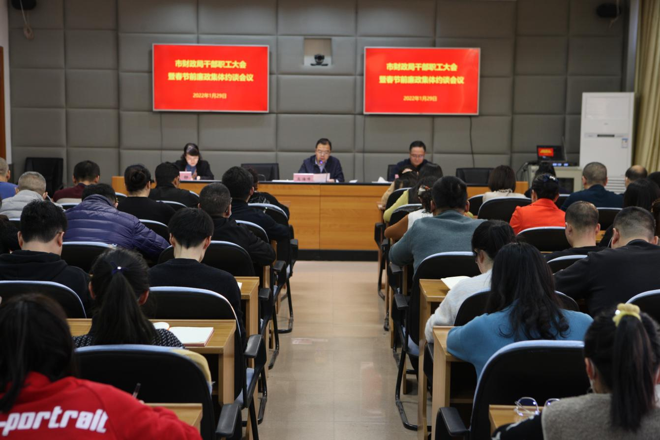 为了进一步落实全面从严治党的要求,筑牢拒腐防变的思想防线和行为底线,营造风清气正的节日氛围,1月29日上午,市财政局召开干部职工大会暨春节前廉政集体约谈会议,全局干部职工参加会议。