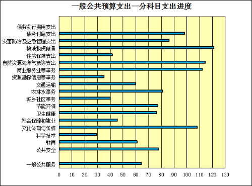 分科目情况:一般公共服务支出完成17243万元,占变动预算的64.4%,同比增长17.8%;公共安全支出完成13489万元,占变动预算的78.1%,同比增长42.1%;教育支出完成33141万元,占变动预算的61.1%,同比增长21.5%;科学技术支出完成1443万元,占变动预算的29.1%,同比增长409.9%;文化体育与传媒支出完成14553元,占变动预算的97.4%,同比增长347.1%;社会保障和就业支出完成12305万元,占变动预算的67.3%,同比下降21.4%;卫生健康支出完成17530万元,占变动预算的76.3%,同比下降1.1%;节能环保支出完成8302万元,占变动预算的77.2%,同比下降12.1%;城乡社区事务支出完成25317万元,占变动预算的41.6%,同比下降66.9%;农林水事务支出完成8494万元,占变动预算的80.8%,同比增长104.5%;交通运输支出完成3167万元,占变动预算的59.7%,同比增长10.7%;资源勘探信息等事务支出完成932万元,占变动预算35%,同比下降54.1%;商业服务业等事务支出完成925万元,占变动预算的90.2%,同比增长43%;自然资源海洋气象等支出完成1073万元,占变动预算94.3%,同比增长14.6%;住房保障支出完成6415万元,占变动预算41.6%;同比下降44.6%;粮油物资储备支出完成1631万元,占变动预算的93.4%,同比增长158.1%;灾害防治及应急管理支出完成1345万元,占变动预算的86.1%,同比增长76.3%;债务付息支出完成24553万元,占变动预算的98.2%。
