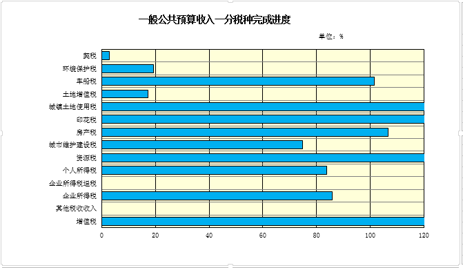 分级次情况:上划中央收入完成17.96亿元,占年预算的120.6%,同比增长62.2%;上划省级收入完成5.88亿元,占年预算的121.4%,同比增长37.7%。地区性财政收入完成54.4亿元,占年预算的127.6%,同比增长44.4%。