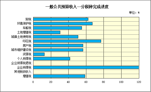 分级次情况:上划中央收入完成109794万元,占年预算的57.6%,同比增长43.9%;上划省级收入完成31318万元,占年预算的54.8%,同比下降2.9%。地区性财政收入完成332055万元,占年预算的57.8%,同比增长35.4%。