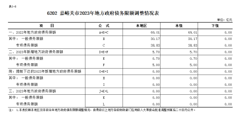 嘉峪关市2023年地方政府债务限额调整情况.xls