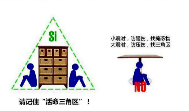 室内三角避震空间,比如内墙墙根、墙角、卫生间等开间小的地方(注:室内三角并不是指家具和预制板等形成的「生命三角」,房子倒塌或摇晃时,这些家具都会大幅移动,无法形成稳固三角);