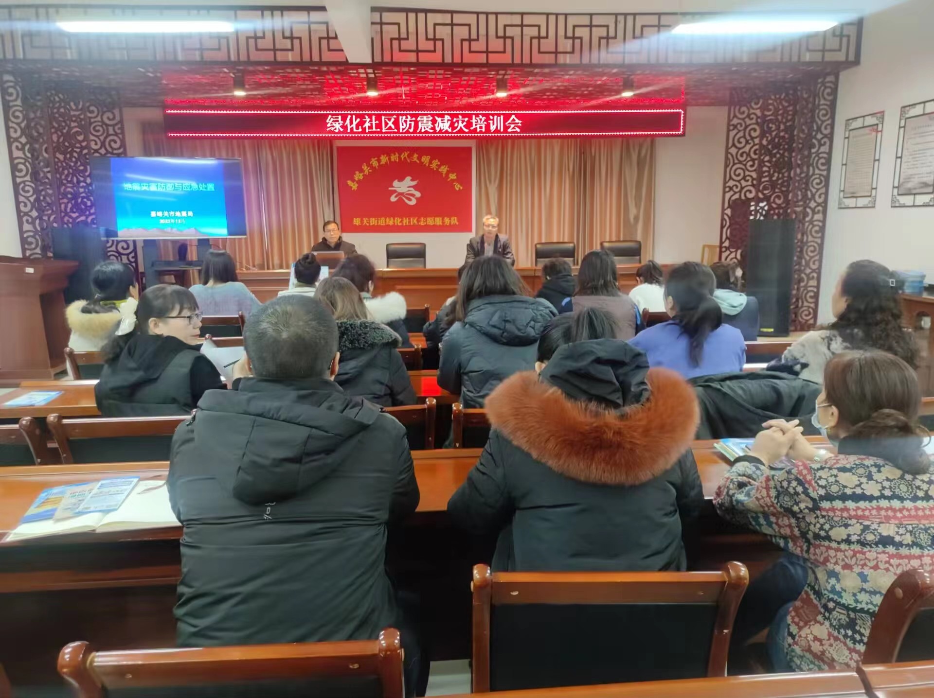 为深入宣传防震减灾和避险互救知识,提高居民防震减灾意识和自救互救能力,12月22日,嘉峪关市地震局深入雄关街道绿化社区开展“人人讲安全 个个会应急”防震减灾知识讲座及地震演练活动,绿化社区辖区党员、社区工作人员、物业公司员工、小区居民群众共计40余人参加。