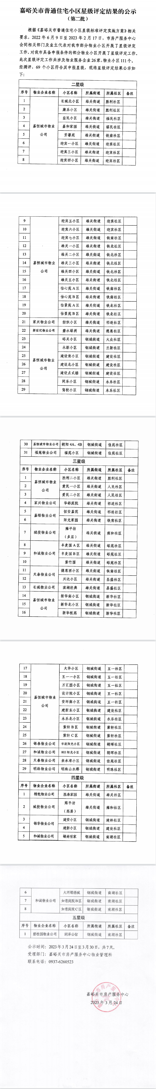 2023年第16期 嘉峪关市普通住宅小区星级评定结果的公示(第二批)