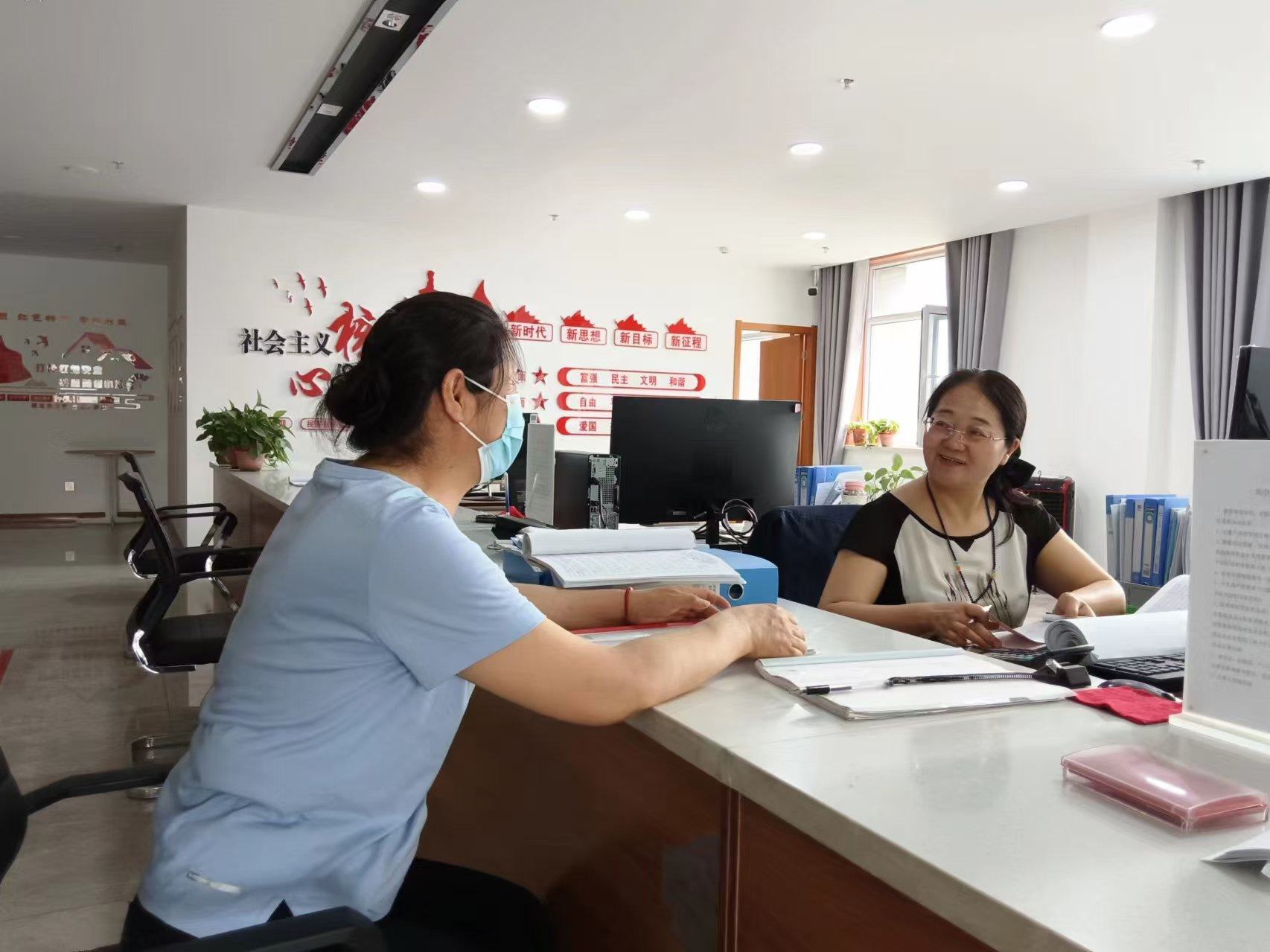 图为雍平坊物业服务站工作人员收集物业服务意见建议