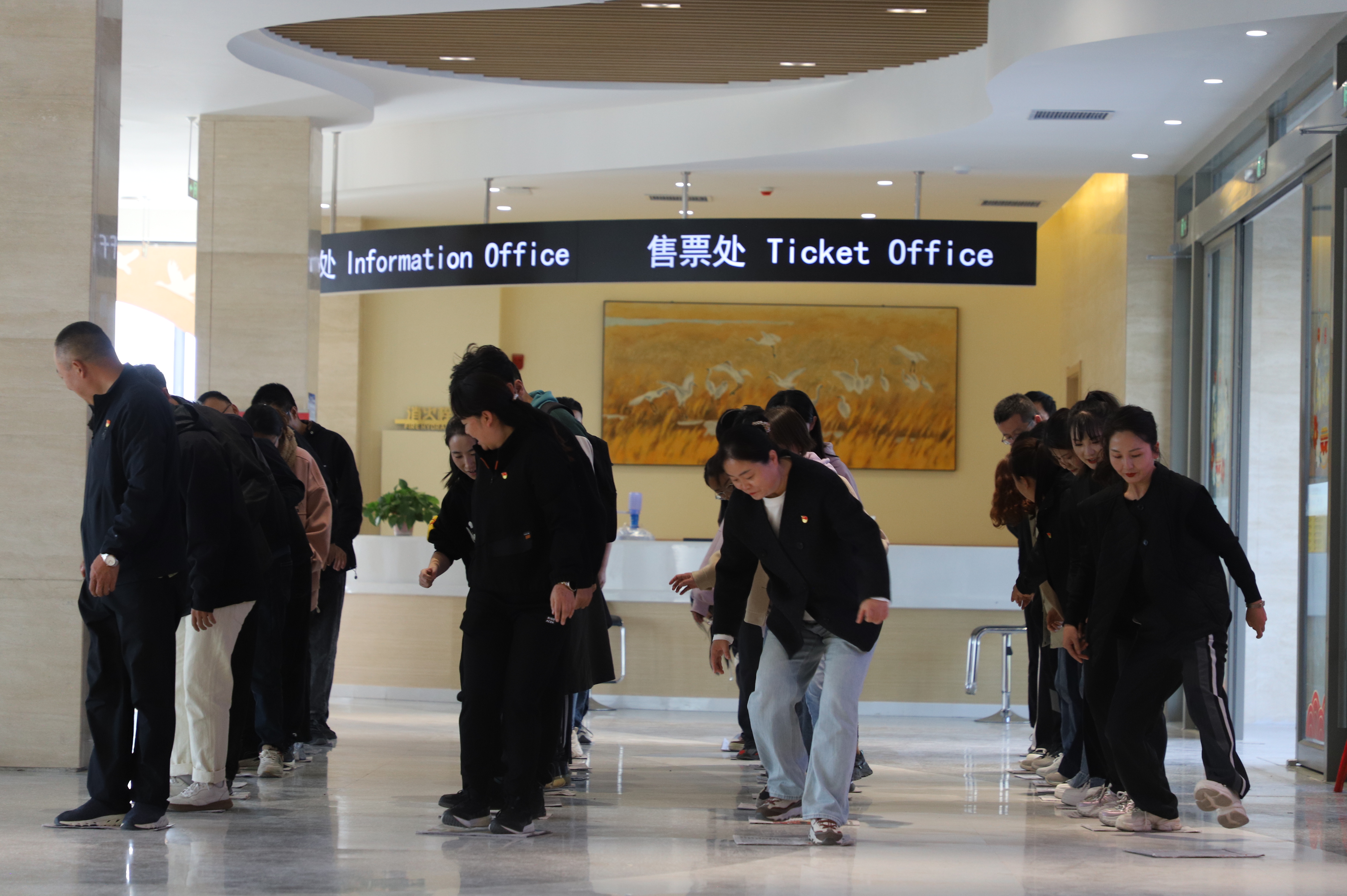 图为市房产服务中心党总支联合兰州银行党支部开展趣味比赛