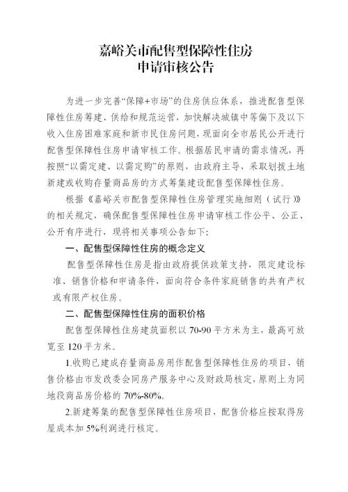 25年第51期 嘉峪关市配售型保障性住房申请审核公告