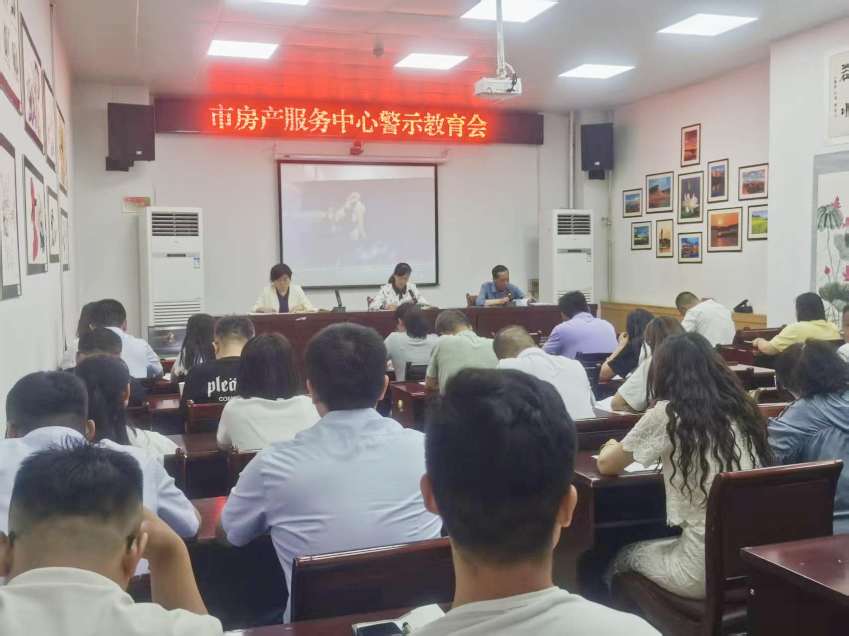 6月10日,市房产服务中心召开警示教育会,会议集中学习了习近平总书记关于加强党的作风建设的重要论述,传达省委、市委警示教育会精神,通报违反中央八项规定精神典型案例,集中观看警示教育片。市房产服务中心全体干部职工参加了会议。