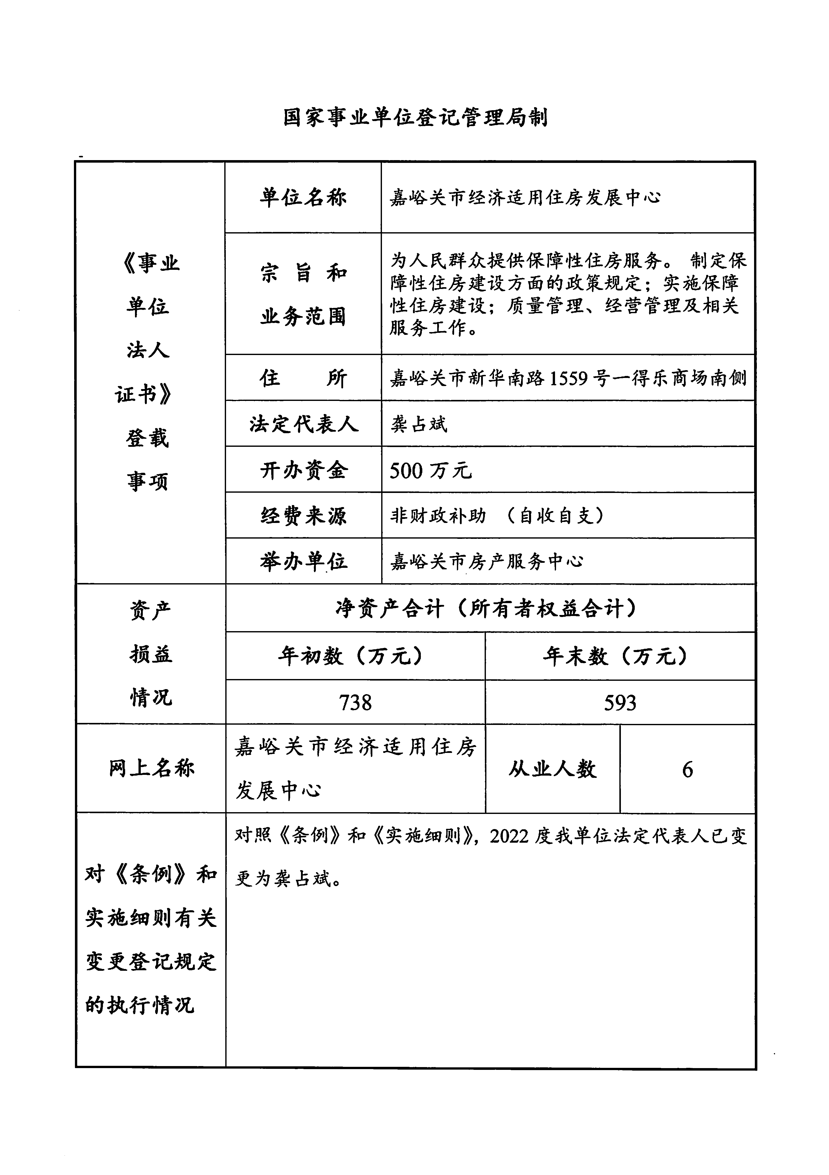 嘉峪关市经济适用住房发展中心2022年度事业单位法人年度报告书