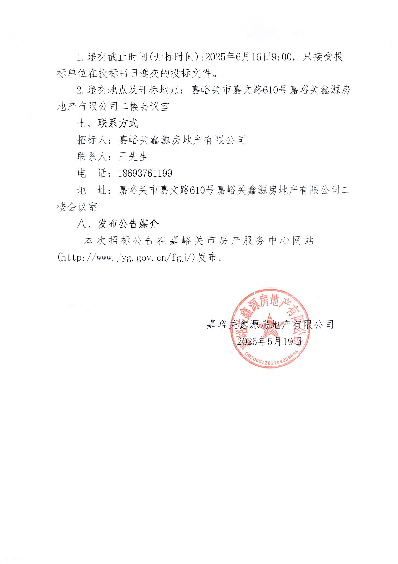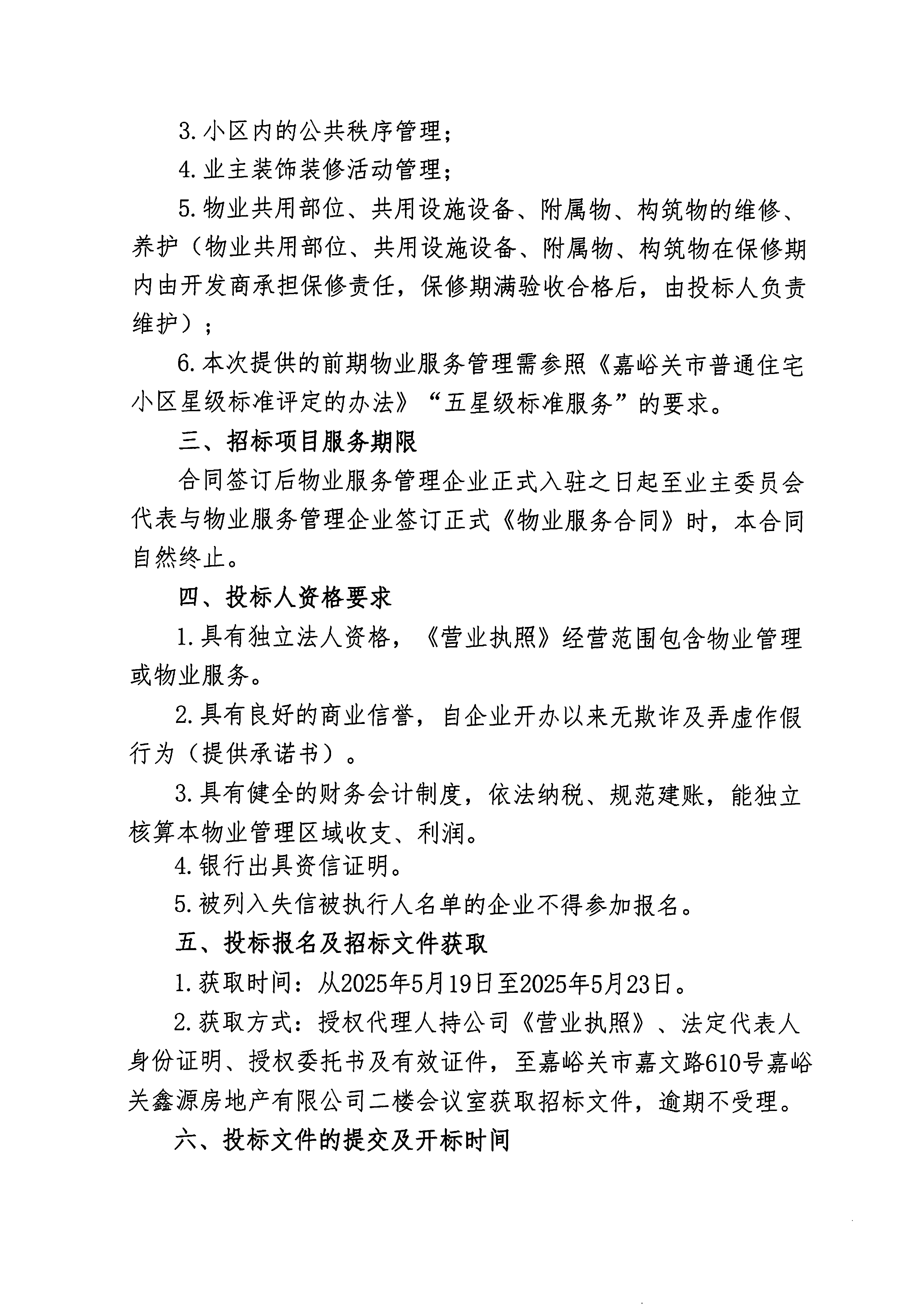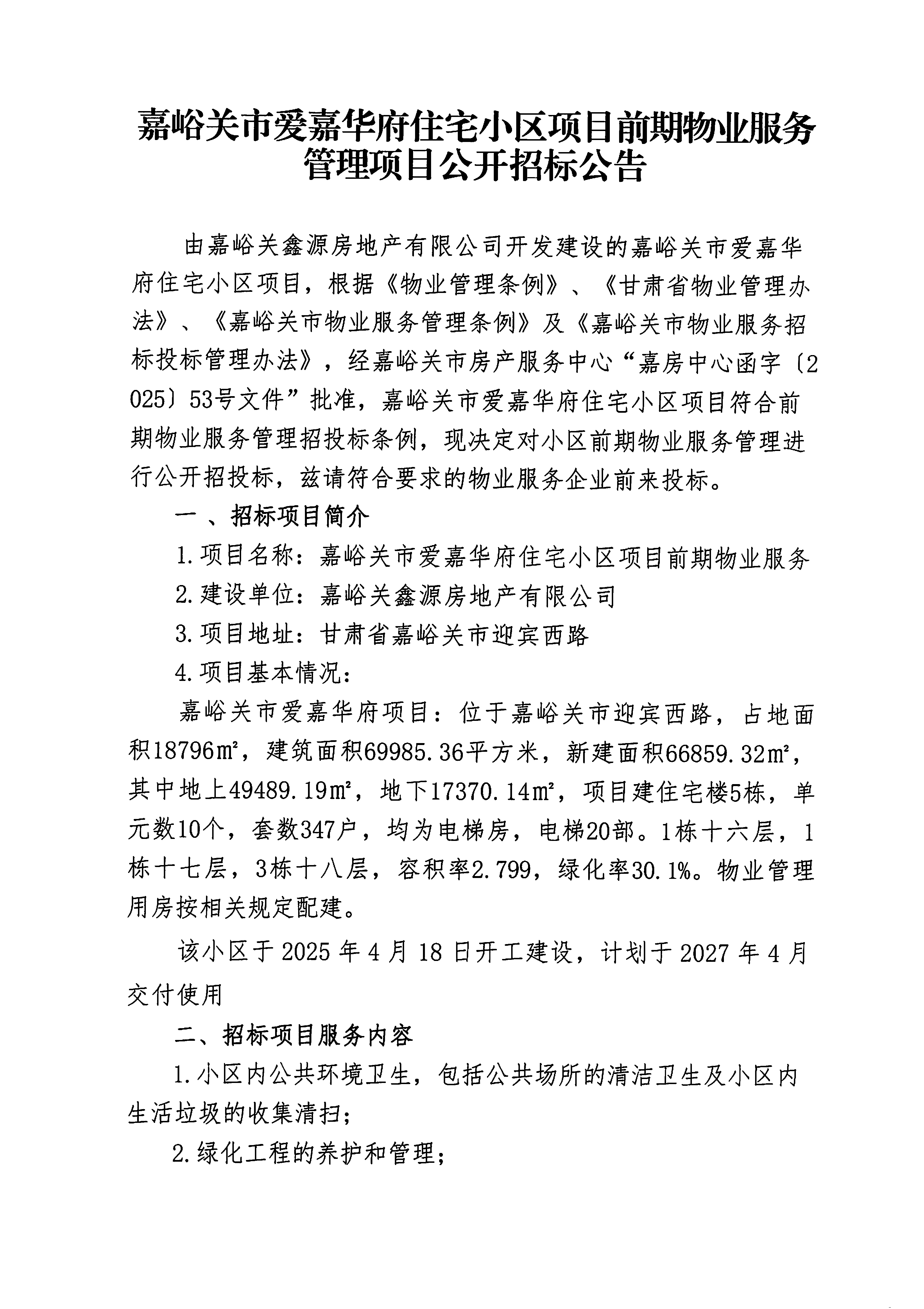 嘉峪关市爱嘉华府住宅小区项目前期物业服务管理项目公开招标公告
