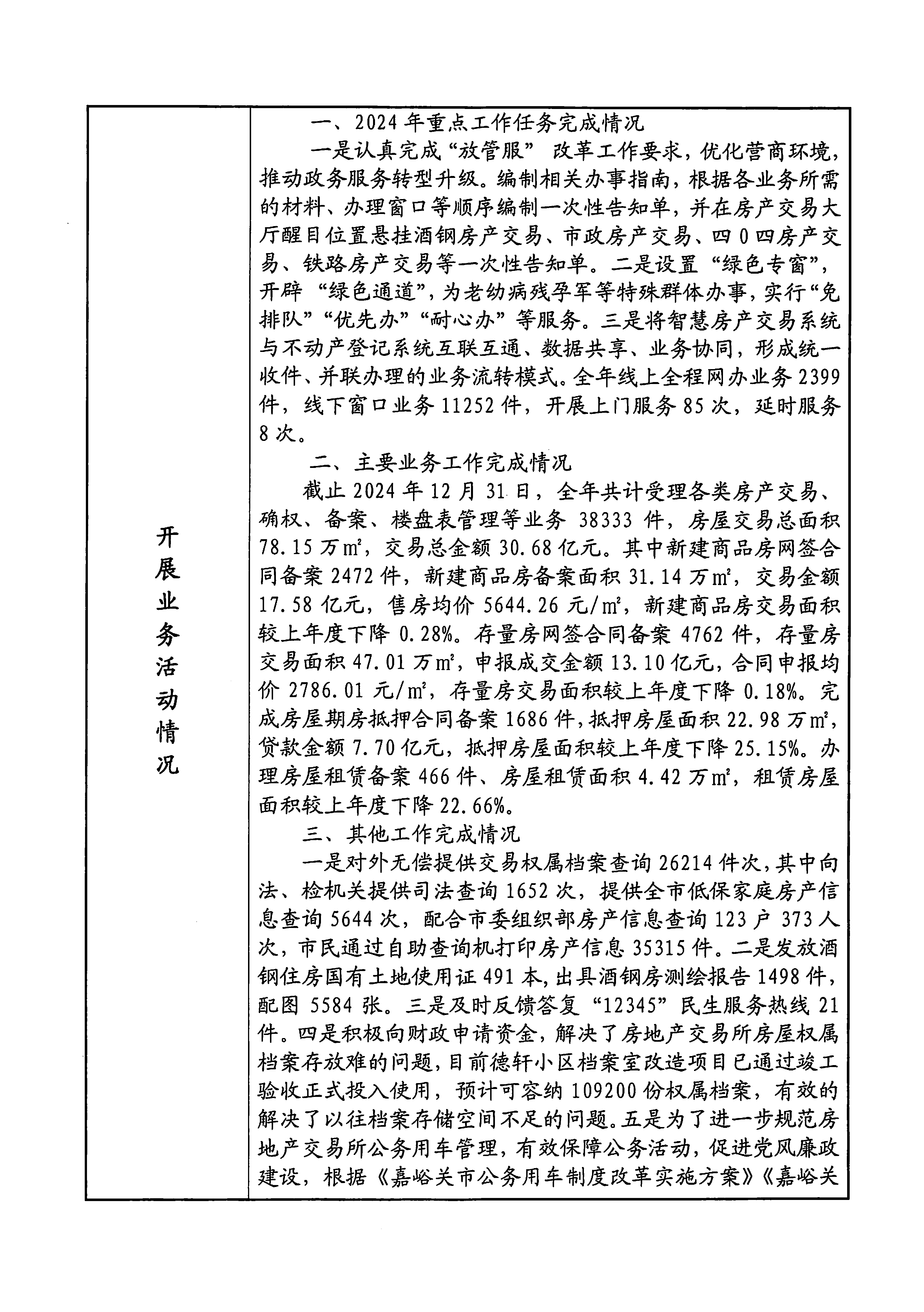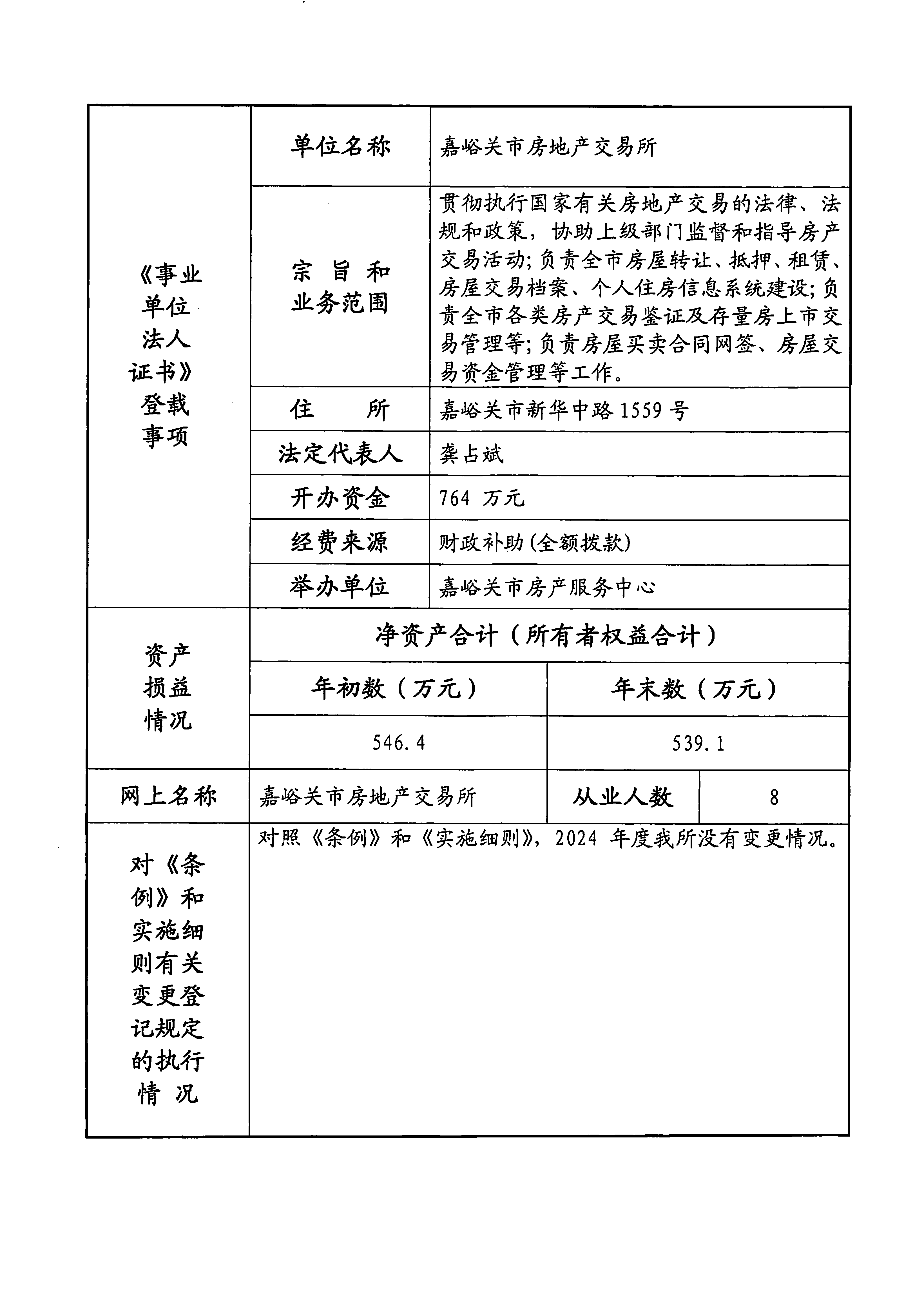 嘉峪关市房地产交易所2024年度事业单位法人年度报告书